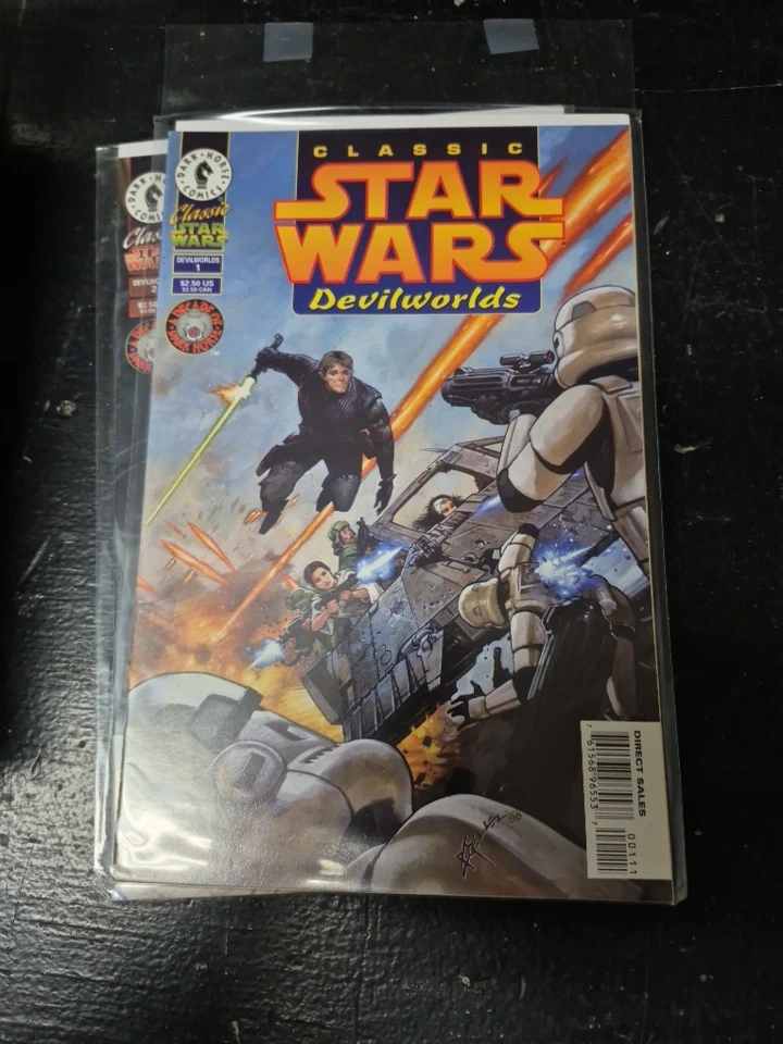 Selling a Classic Star Wars Devilworlds #1 comic book. It's in great condition and comes in a protective sleeve. A must-have for any Star Wars fan!