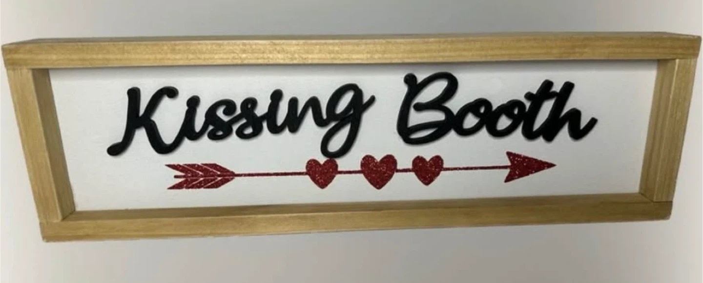 Kissing Booth Wooden Sign- Great For Photo Shoots or Party Decor- 14 Inches Long