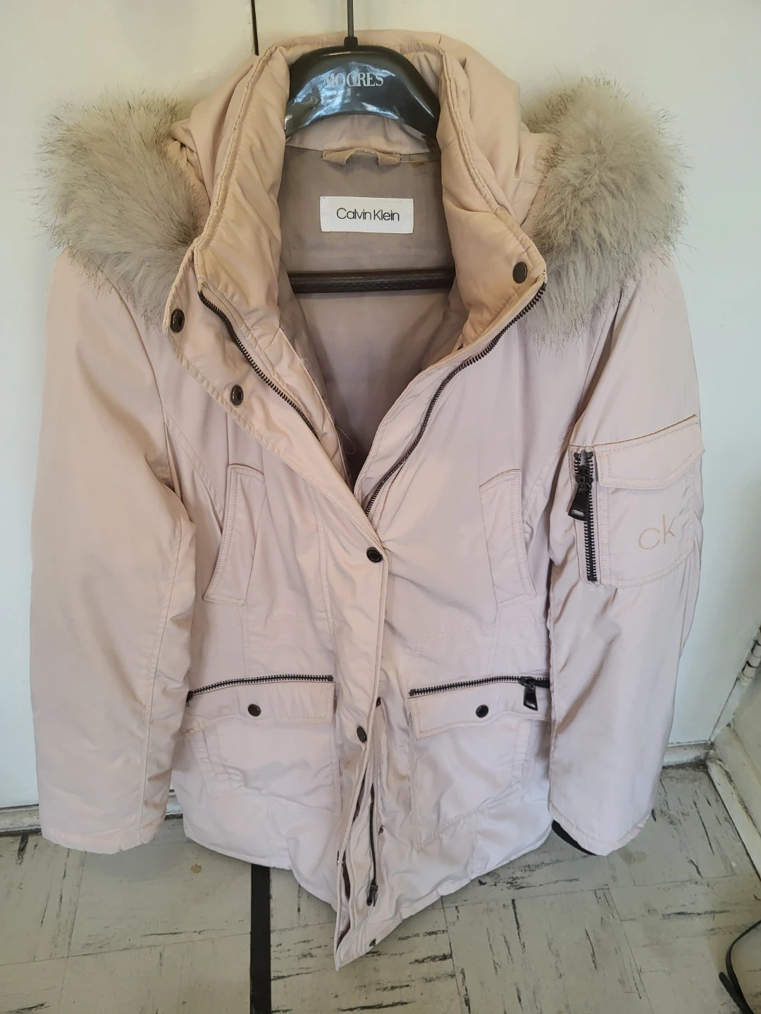 Stay warm this winter with this stylish Calvin Klein parka! Worn twice! The jacket features a faux fur hood and is made with high-quality materials.