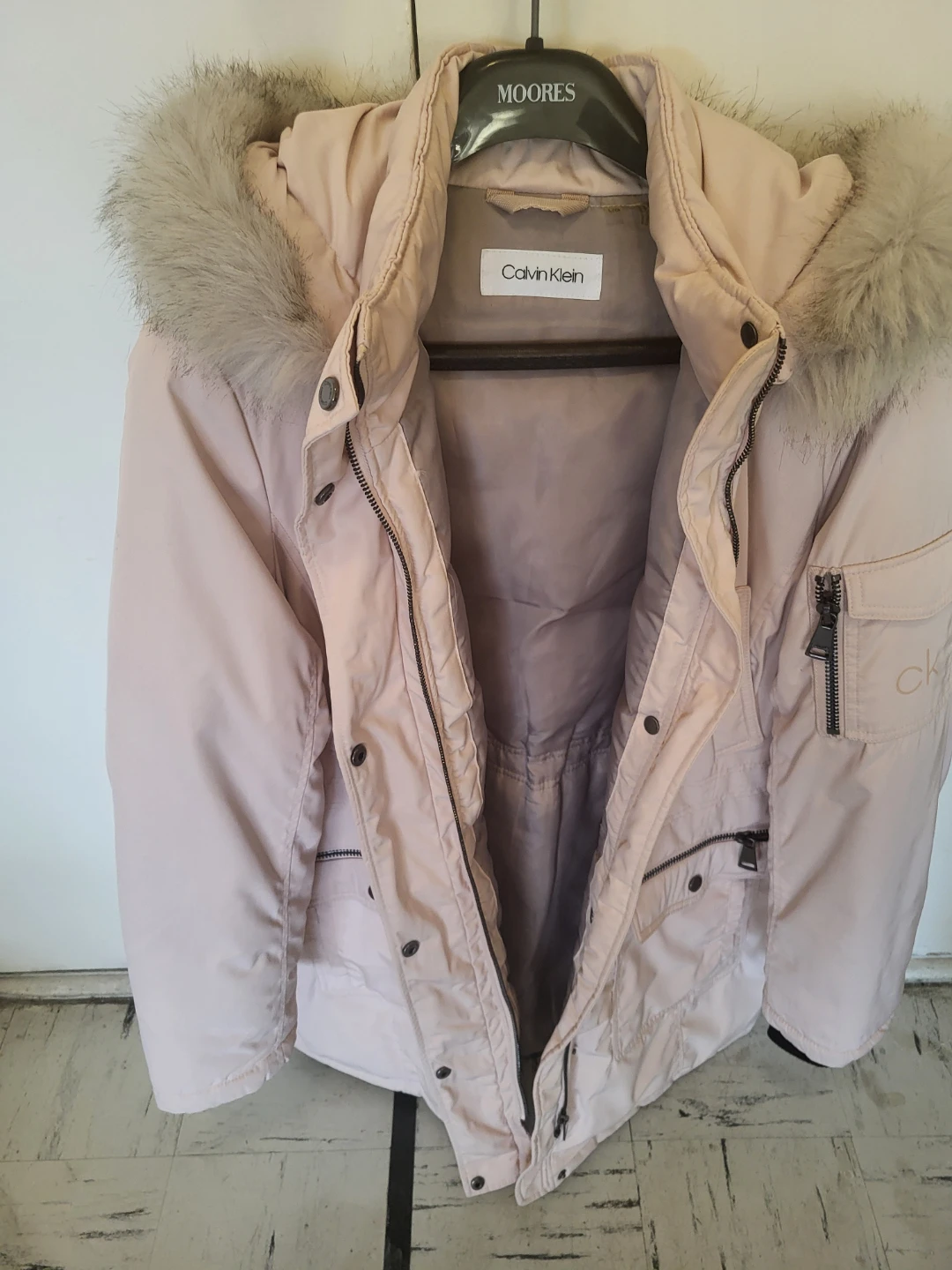 Stay warm this winter with this stylish Calvin Klein parka! Worn twice! The jacket features a faux fur hood and is made with high-quality materials.