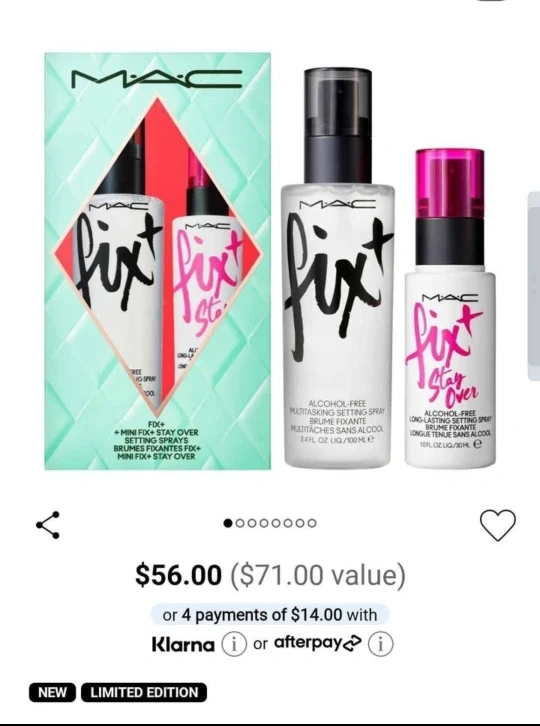 10MAC Fix+ (Classic) – lightly used once on face Hydrating, prime, refreshing mist MAC Fix+ Stay Over – unused Long-wear, alcohol-free formula Both are brand new and never used. Perfect for locking in makeup and keeping your skin fresh all day. Great deal for makeup lovers or pros!