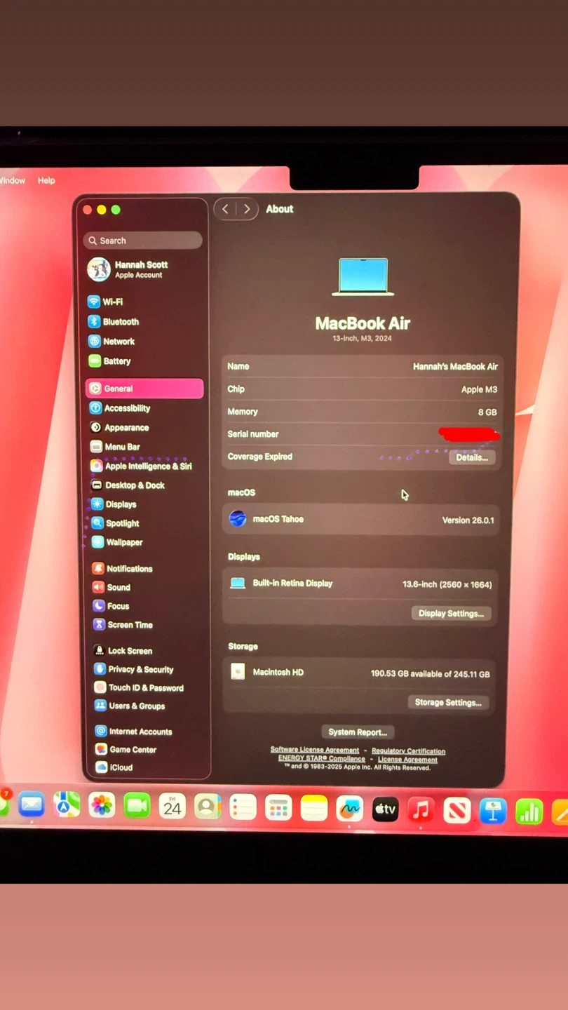 74Selling a MacBook Air with the M3 chip! It has 8GB of memory and a 256GB SSD. The battery health is at 96%. It has a 13.6-inch Retina display with 2560 x 1664 resolution Overall, great condition - comes with a case and the charger