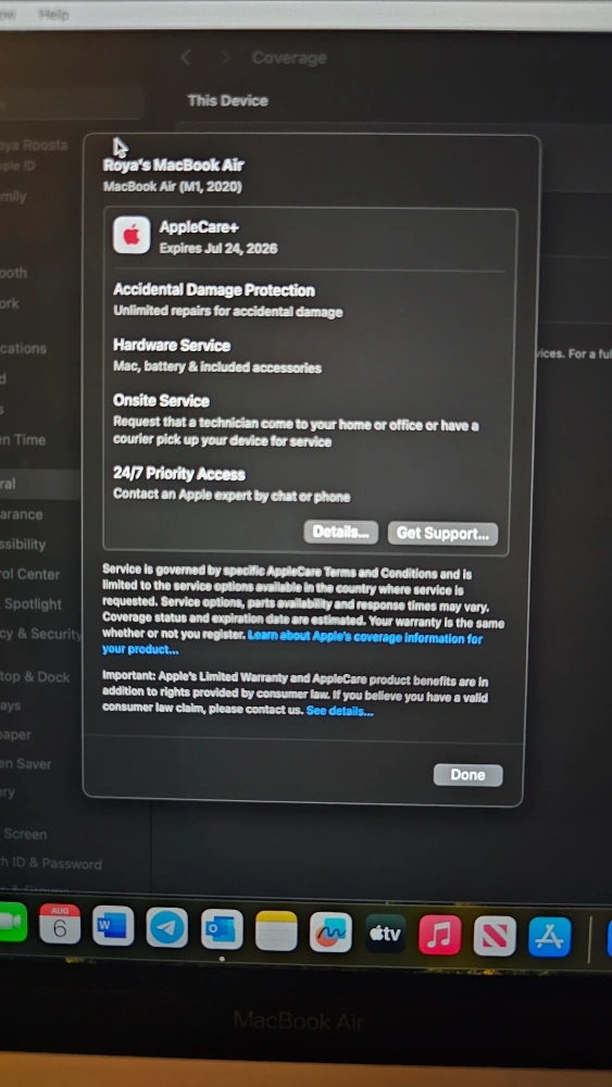 5We are selling our Macbook Air 8G in mint condition. The laptop has barely been used (battery health 100%) and comes with 2 full years of apple care on the device, valid until July 2026. Price is firm.