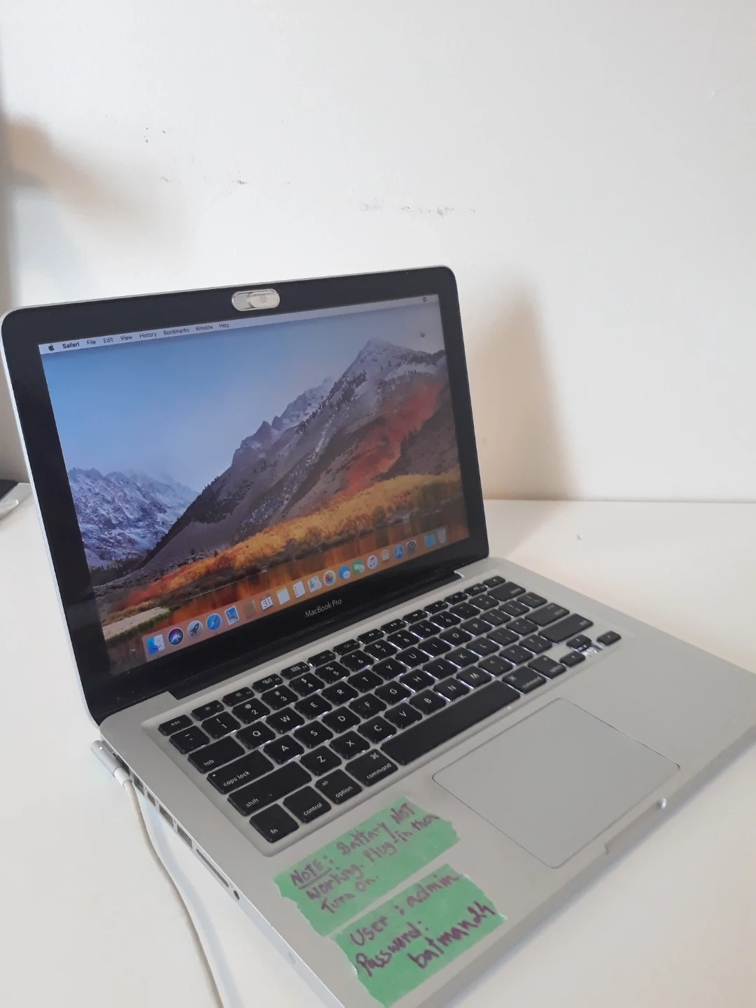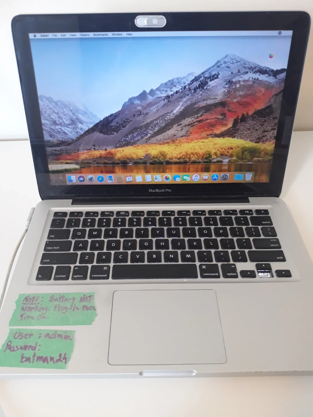 Selling an Apple MacBook Pro 13-inch (2011 model, A1278) with the following specs: Intel Core 2 Duo processor at 2.4 GHz, 8GB RAM, 120GB SSD, running macOS High Sierra (10.13). Screen resolution is 1280 x 800, color is silver. Please note, this laptop has some cosmetic wear: Missing all rubber feet on the bottom Multiple scratches on the underside Large sticker on the front and some smaller stickers near the keyboard Functionally, the laptop does not power on unless it is plugged in, so it may need battery or other hardware repairs. Ideal for parts, repair projects, or as a backup machine. Sold as-is. More photos and videos available upon request. Location: Scarborough (Corvette Ave) Serious inquiries only. Testing before purchase is available. Message for more details or to arrange pickup.