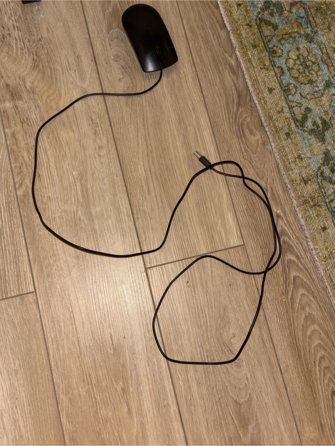 A standard wired computer mouse in black. It's a simple, functional peripheral for everyday computer use. Plug and play design.