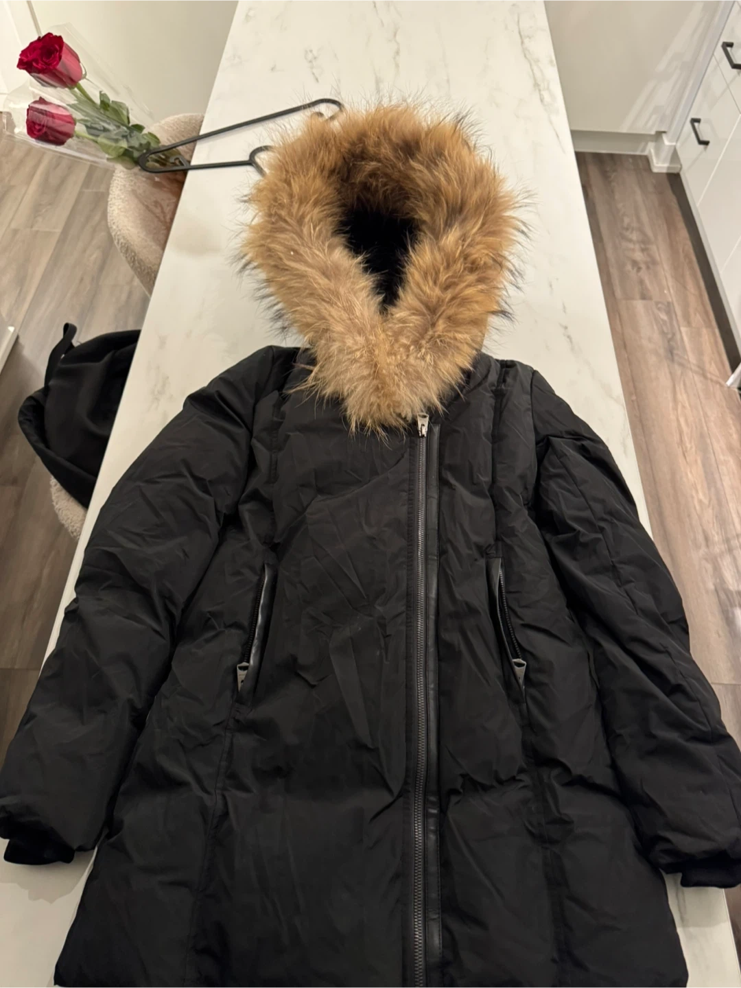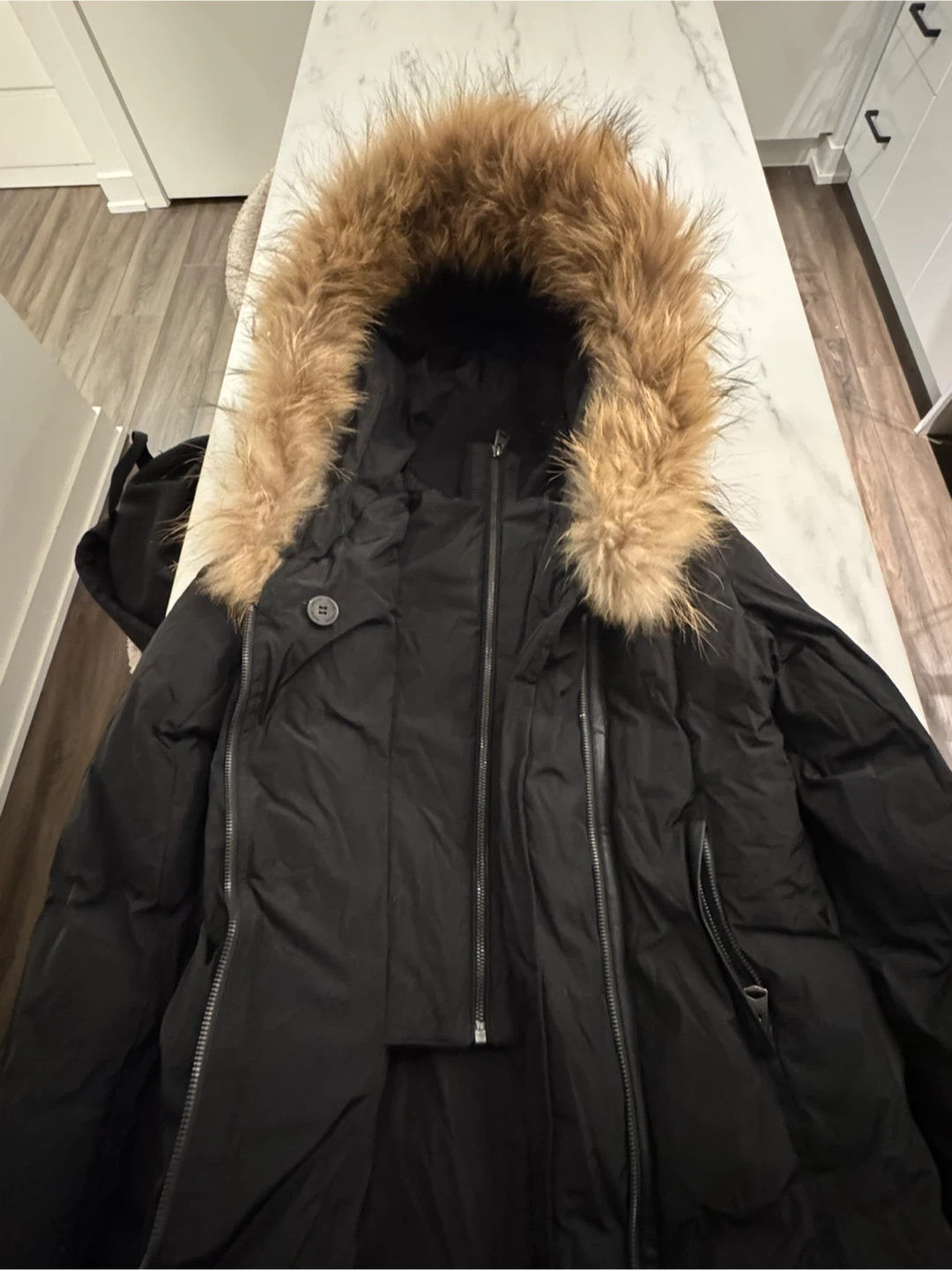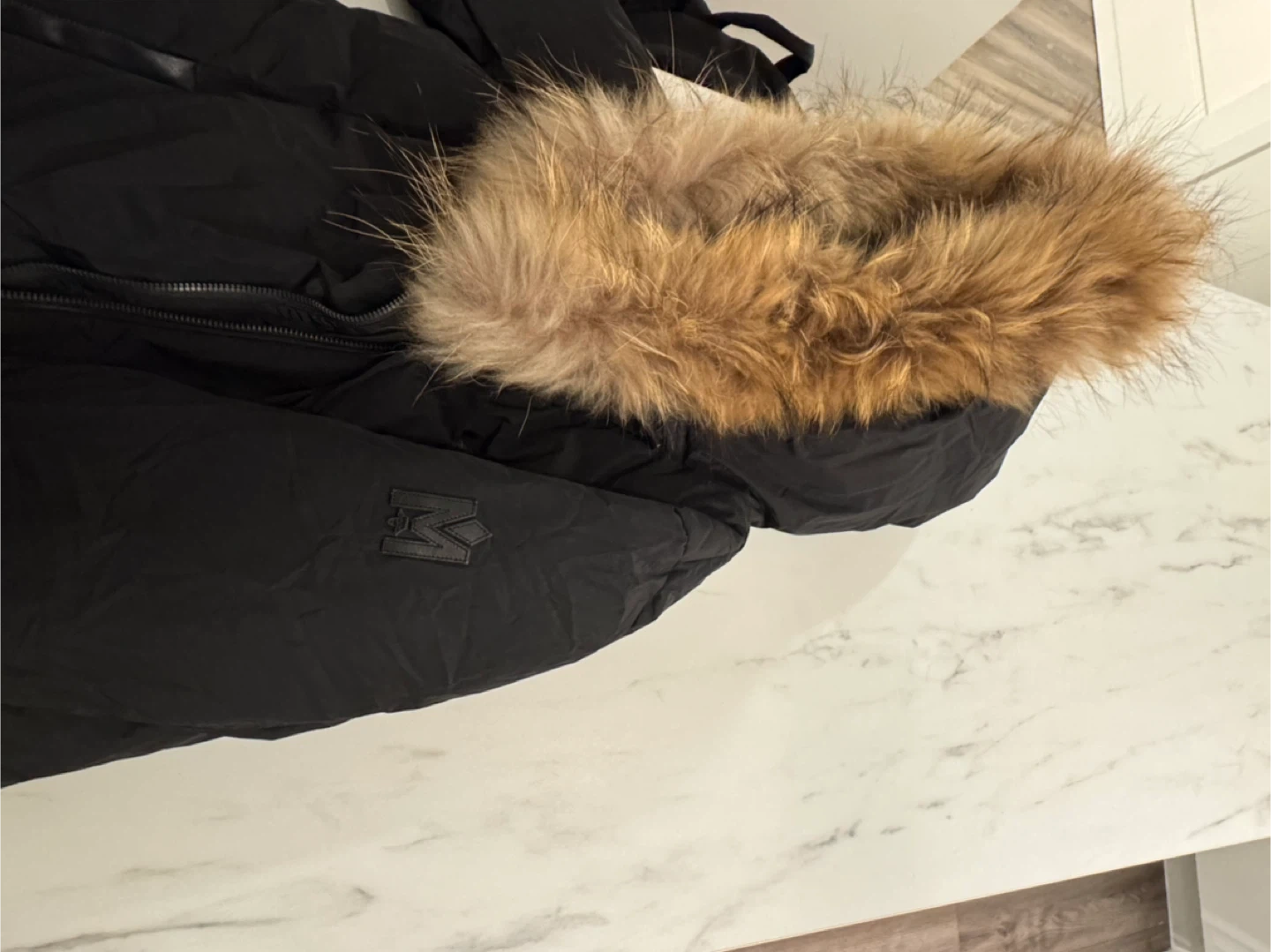 10Selling a gently used Mackage Montreal black down puffer coat in size 14. But fits like a small woman’s. It's a stylish and warm coat, perfect for the Canadian winter! The coat features a fur-trimmed hood and a flattering silhouette