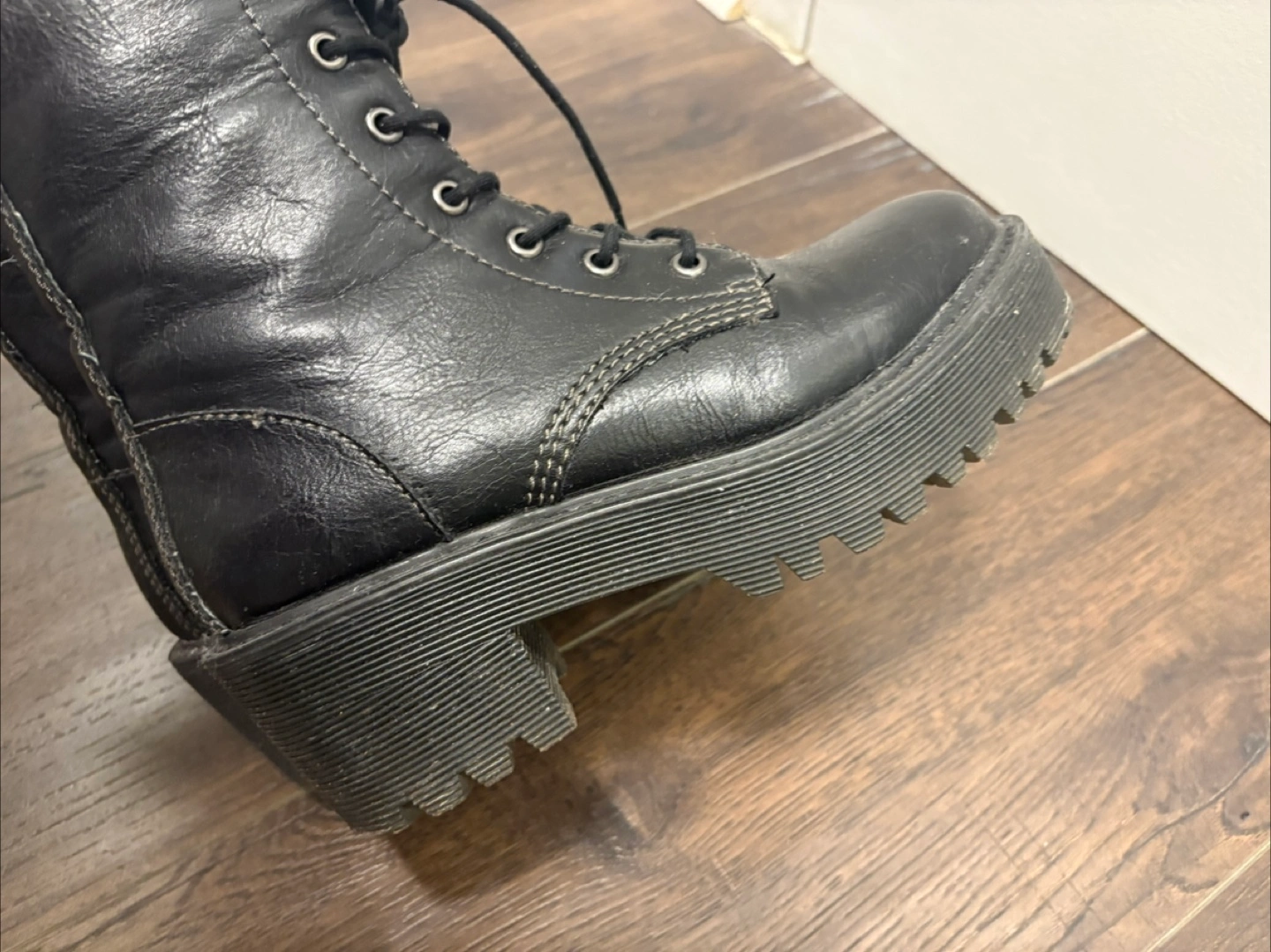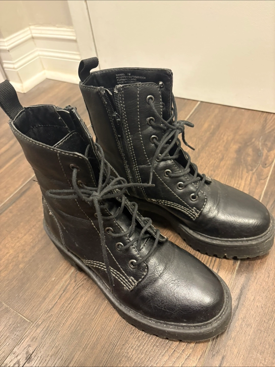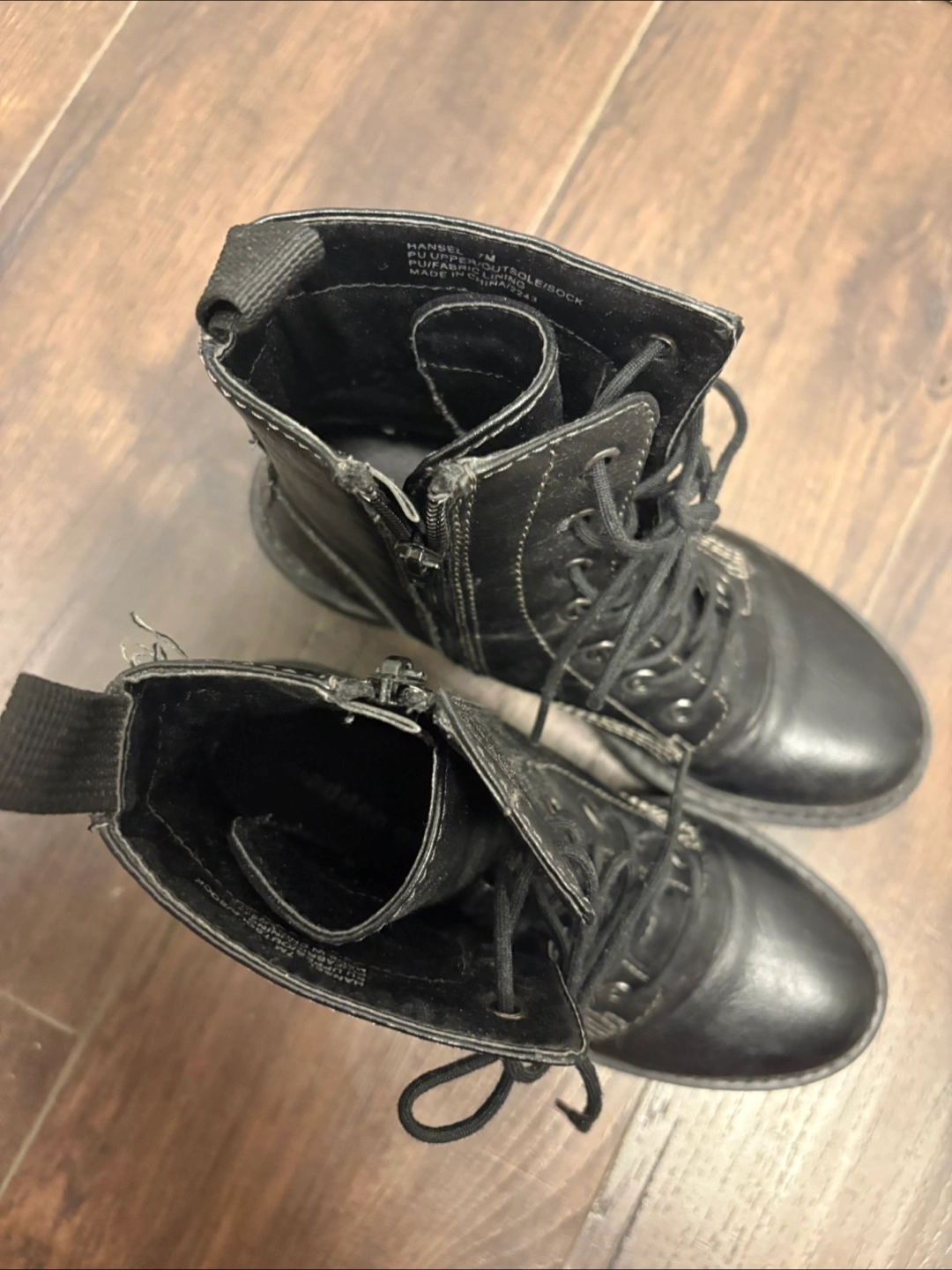 Selling a pair of Madden Girl black combat boots. They are in good condition and ready for a new home!