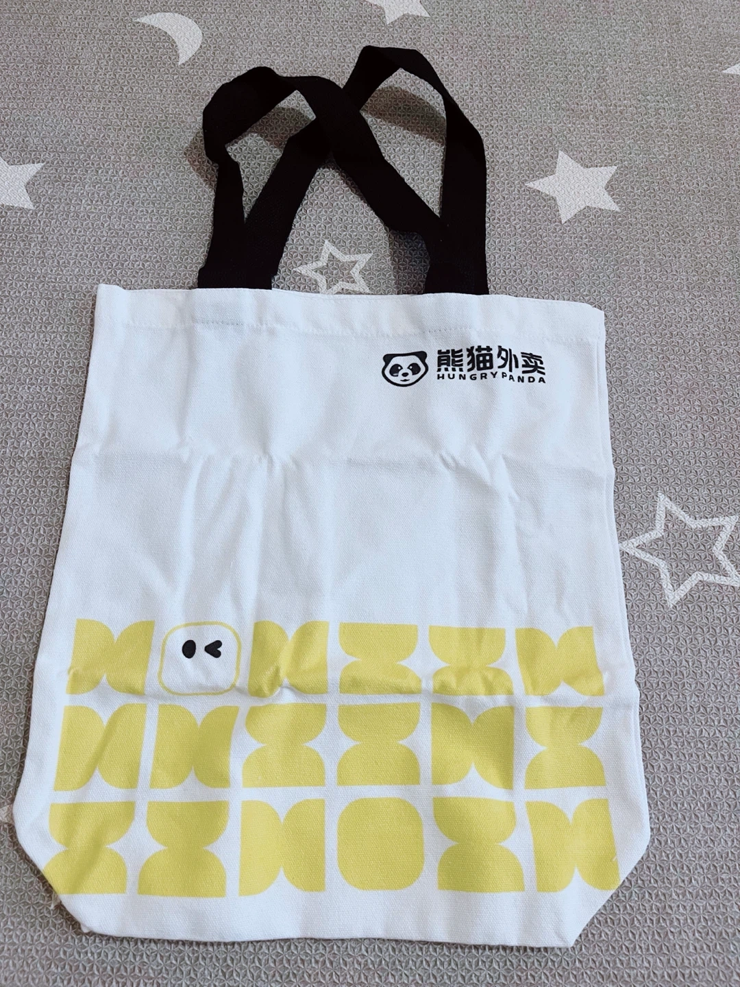 Here's a cute tote bag from Hungry Panda! It features a fun design with New York landmarks and the Hungry Panda logo. Perfect for carrying groceries or everyday essentials