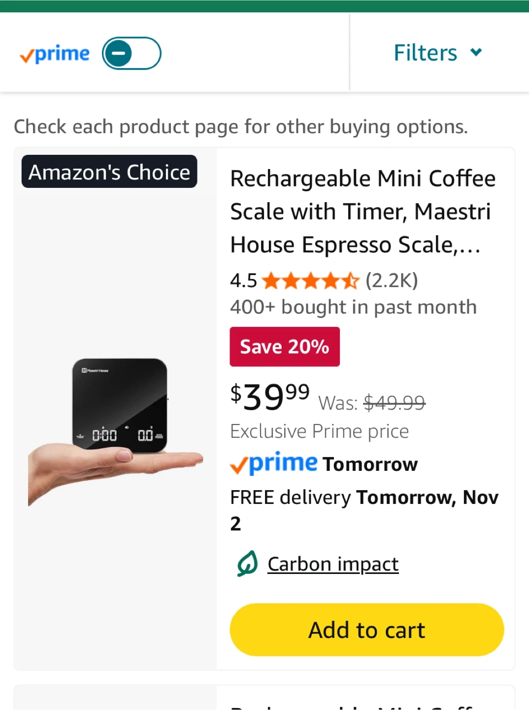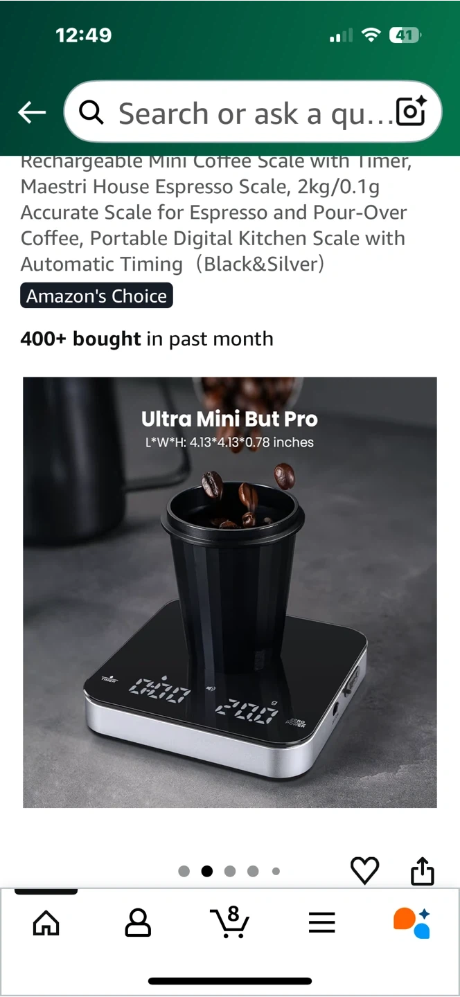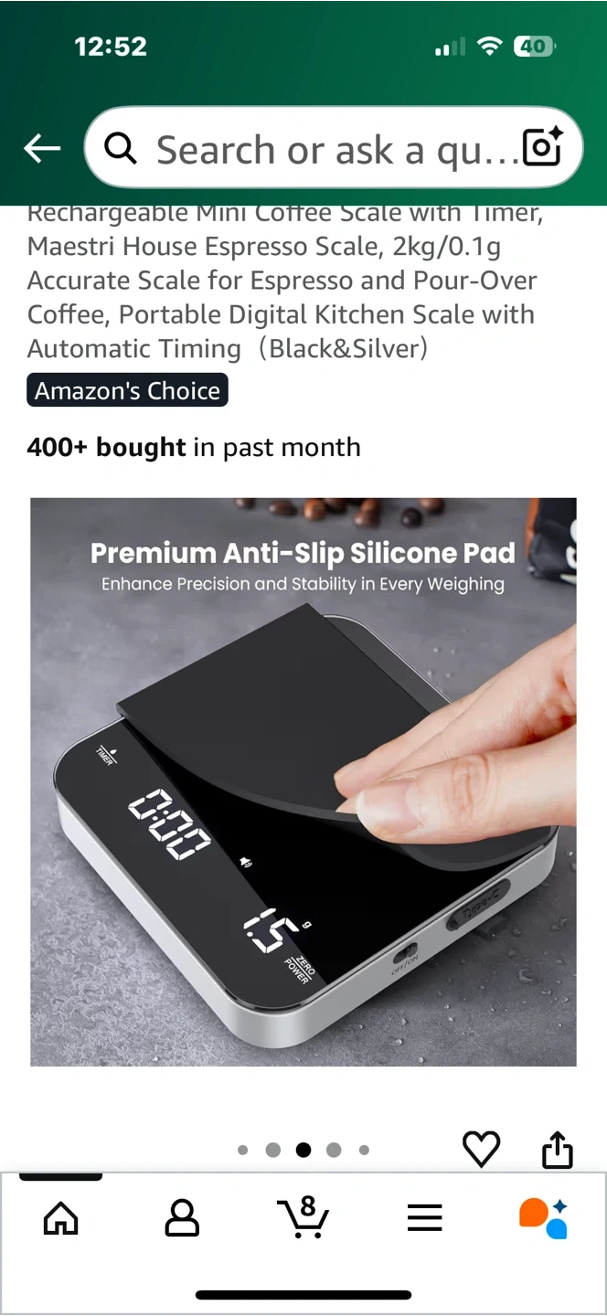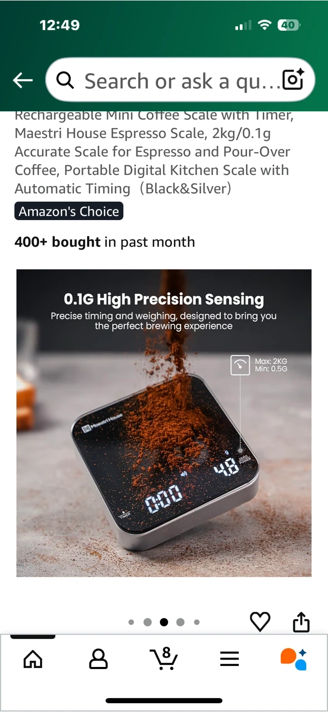 84Selling a Maestri House Espresso rechargeable mini coffee scale! It's perfect for espresso and pour-over coffee. It has a premium anti-slip silicone pad to enhance precision and stability. The scale also features 0.1G high precision sensing for precise timing and weighing. It's ultra mini but pro with dimensions of L*W*H: 4.13*4.13*0.78 inches