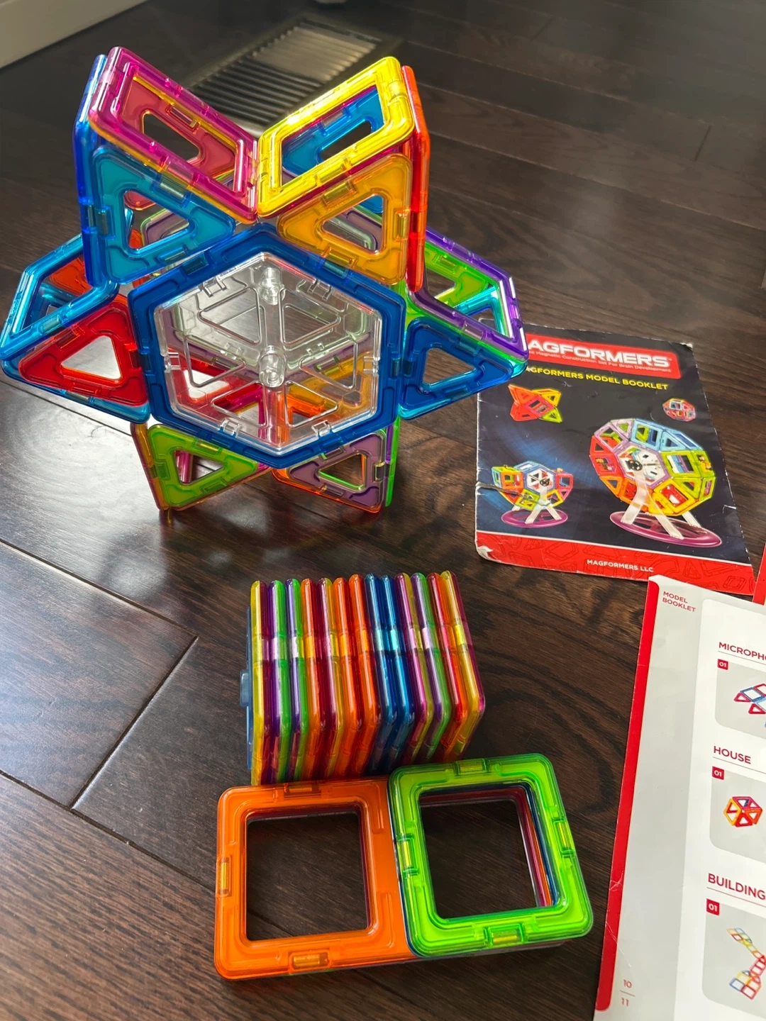 21Selling a Magformers magnetic building block set! It comes with a variety of colourful shapes to build all sorts of creations. Includes the model booklet for inspiration
