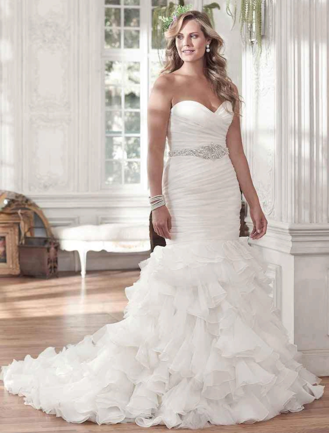 15Discontinued Maggie Sottero Wedding Dress in Ivory Sz 12 Worn once, professionally dry cleaned and boxed https://www.maggiesottero.com/maggie-sottero/divina/5292 Material : organza Asymmetrically ruched bodice Hugs tight figure providing a slim fit through the hips before releasing into a breathtaking layered skirt Sweetheart neckline and corset back closure Comes with a stunning beaded Swarovski Crystal belt sewn in Pick up in Markham, Ontario