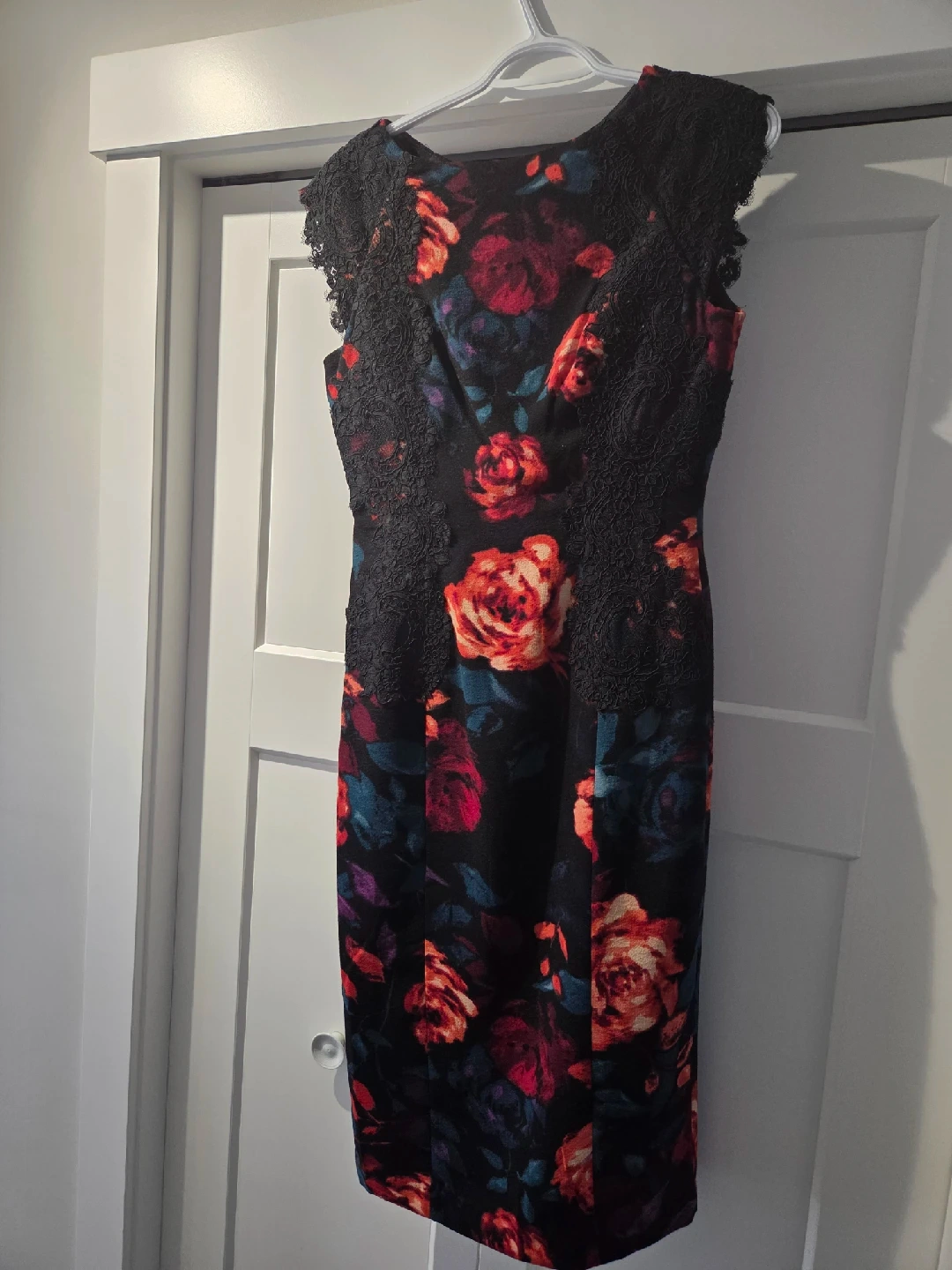20Beautiful Maggy London dress in size 4! It features a lovely floral pattern with lace detailing on the shoulders. Perfect for a special occasion or a night out! Asking $25.00, only worn once!