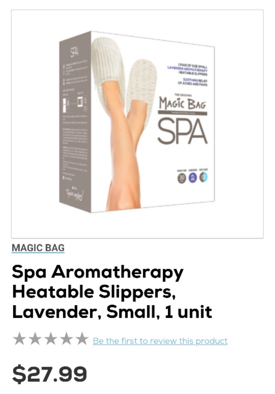 got as a gift, used once and have been sitting in my closet. I do not have the box. I think they are a size small, I am a 7.5-8 and they're a little snug but still fit. about: Lavender aromatheraphy heatable slippers. Soothing relief of aches and pains. Fabric: Luxurious soft slippers for the ultimate in comfort and relaxation at home. Machine washable (remove insert before). Hot/cold therapy: For soothing relief of stress, sore muscles and joint stiffness. Lavender: Promotes ultimate relaxation for body and mind. Natural grains release a moist heat to promote blood circulation. pickup downtown on McCaul street