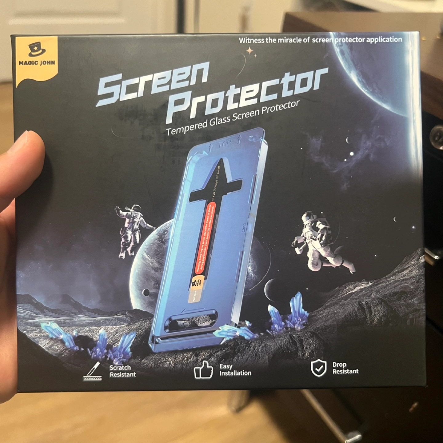 Selling a 2-pack of Magic John tempered glass screen protectors for the iPhone 15 Pro (6.1 inch). They're scratch resistant, drop resistant, and designed for easy installation. Witness the miracle of screen protector application!
