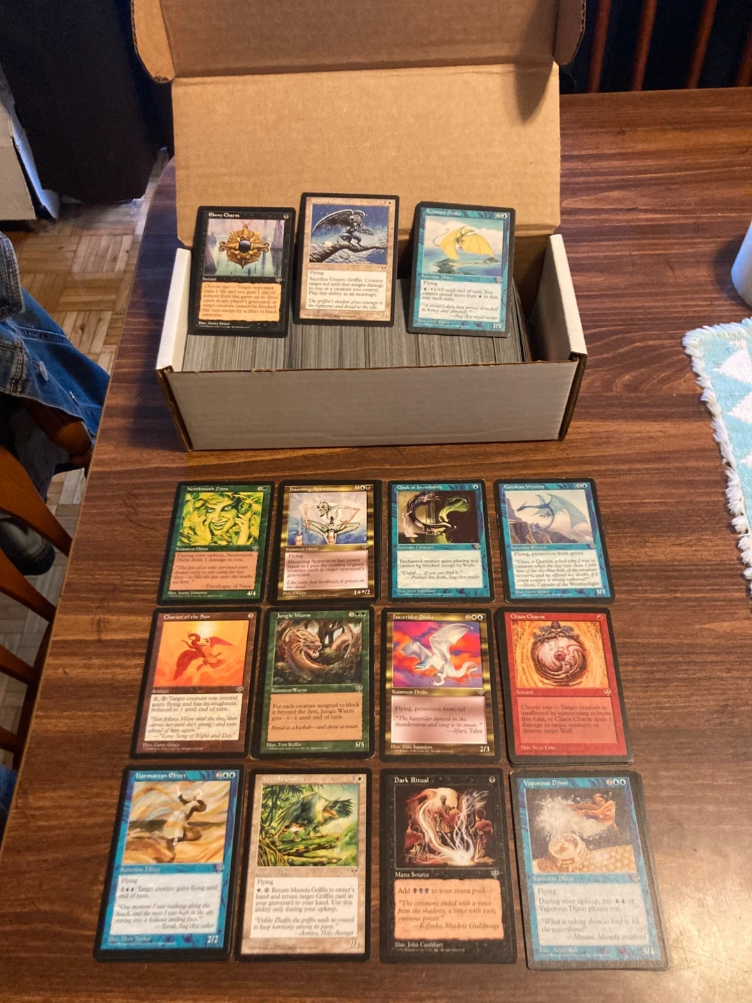Selling a collection of Magic The Gathering cards. They come in a box and are ready for a new home. Perfect for collectors or players looking to expand their decks!