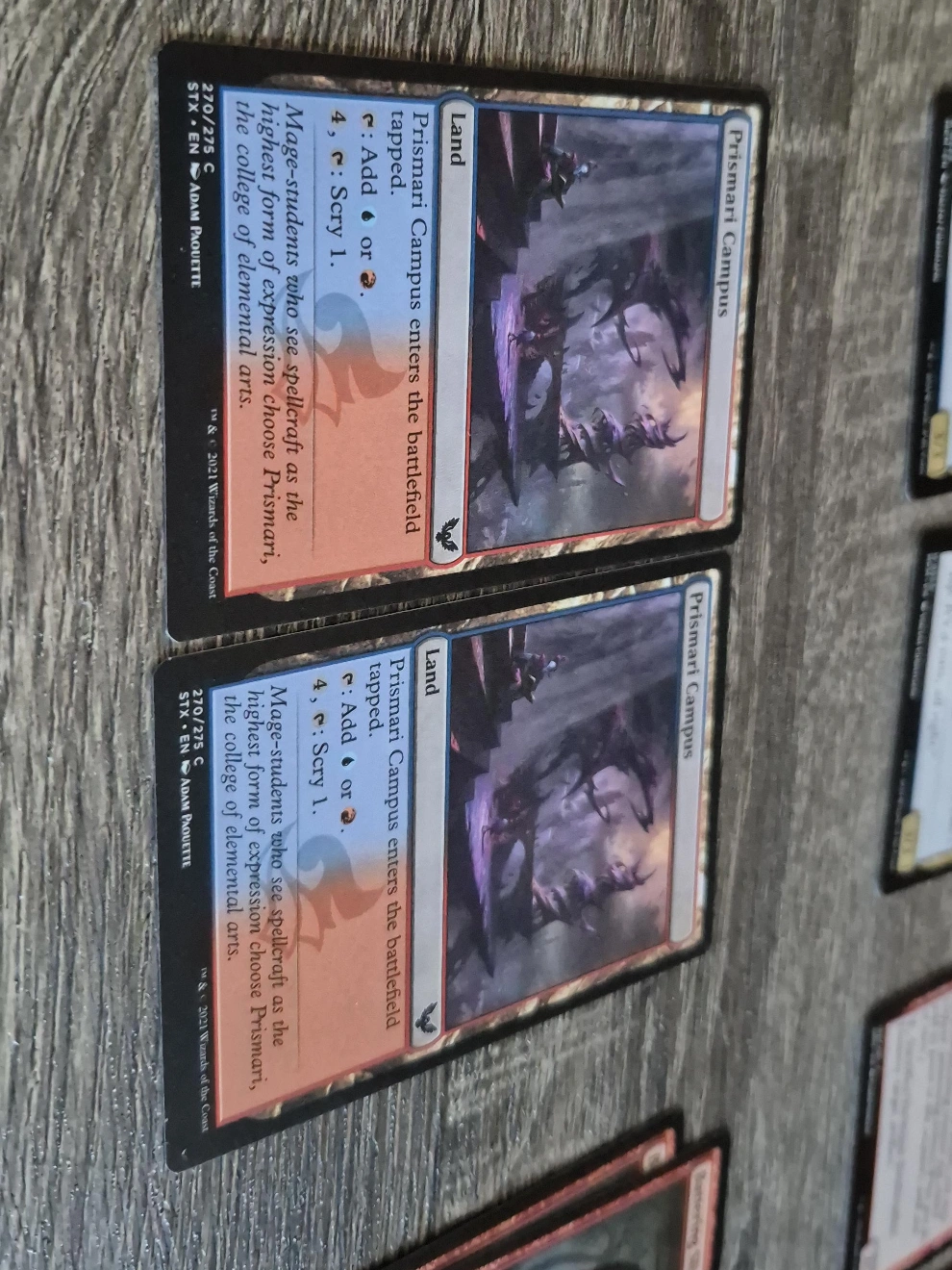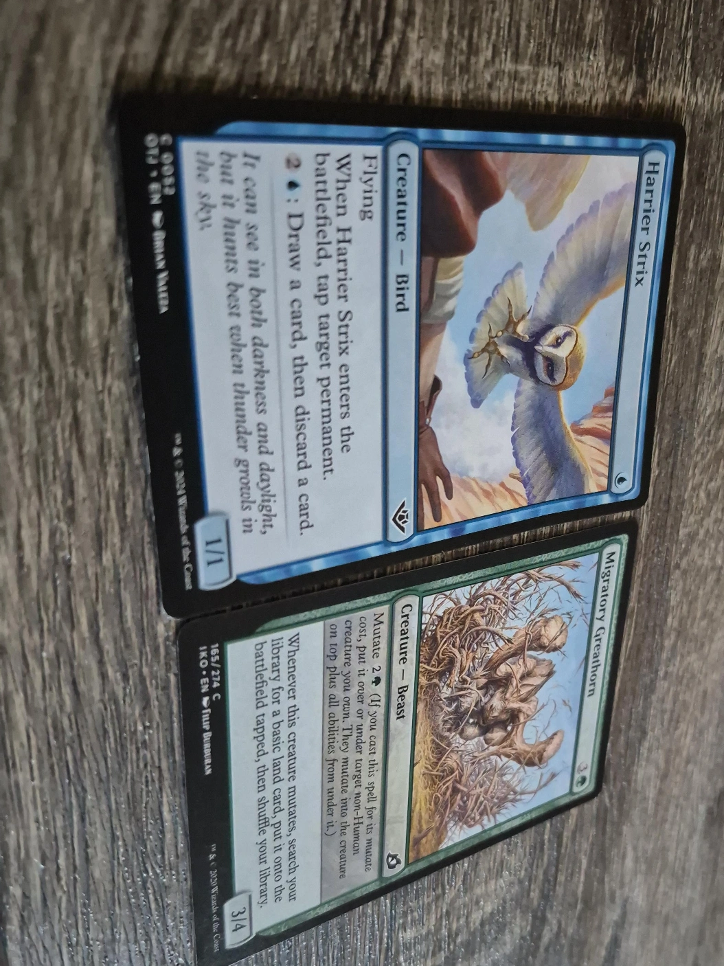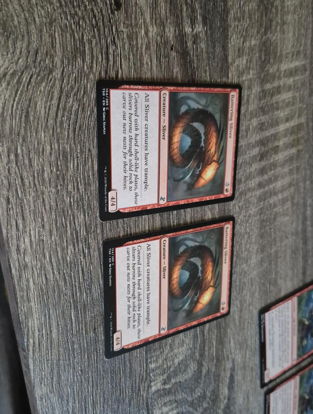 Selling a collection of Magic The Gathering cards. Some of the cards included are Battering Sliver, Private Eye, Prismari Campus, Harrier Strix, Migratory Greathorn, and Yavimaya Steelcrusher