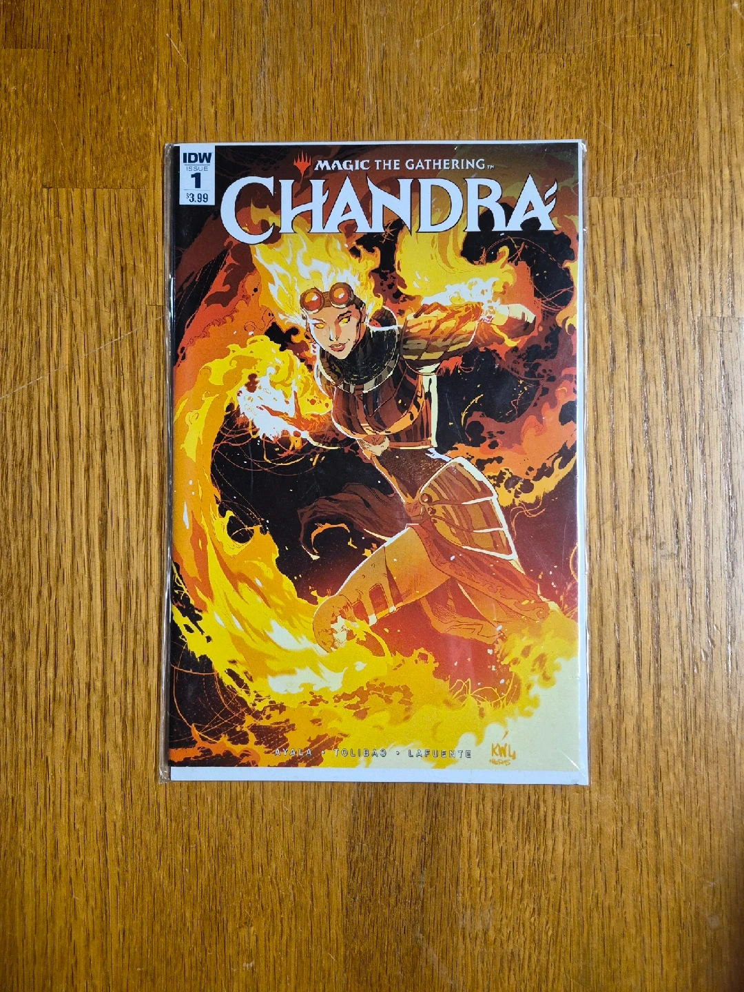 10Selling a Magic The Gathering comic book featuring Chandra. It is issue number 1. In the wake of tragedy, Chandra strikes out on her own, determined to protect the Multiverse, no matter the cost to herself. Along the way she'll not only have to fight new threats, but also her own sense of guilt. Fellow Planeswalker and friend Ajani Goldmane tries to intervene, but it's ultimately on Chandra to save herself, especially when a sinister foe emerges from the shadows.