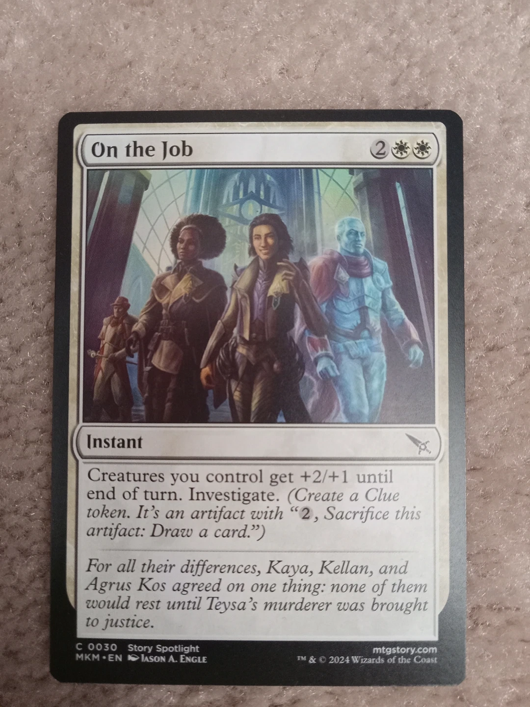 15Selling a Magic The Gathering card, 'On the Job' from the Murder At Karlov Manor series! Card is in NM condition. Great to add to your collection or binder.