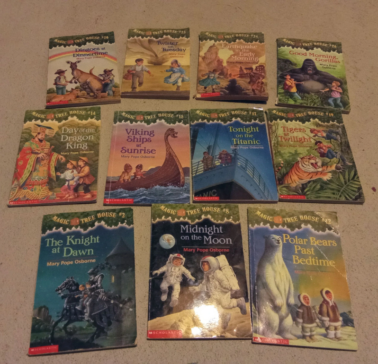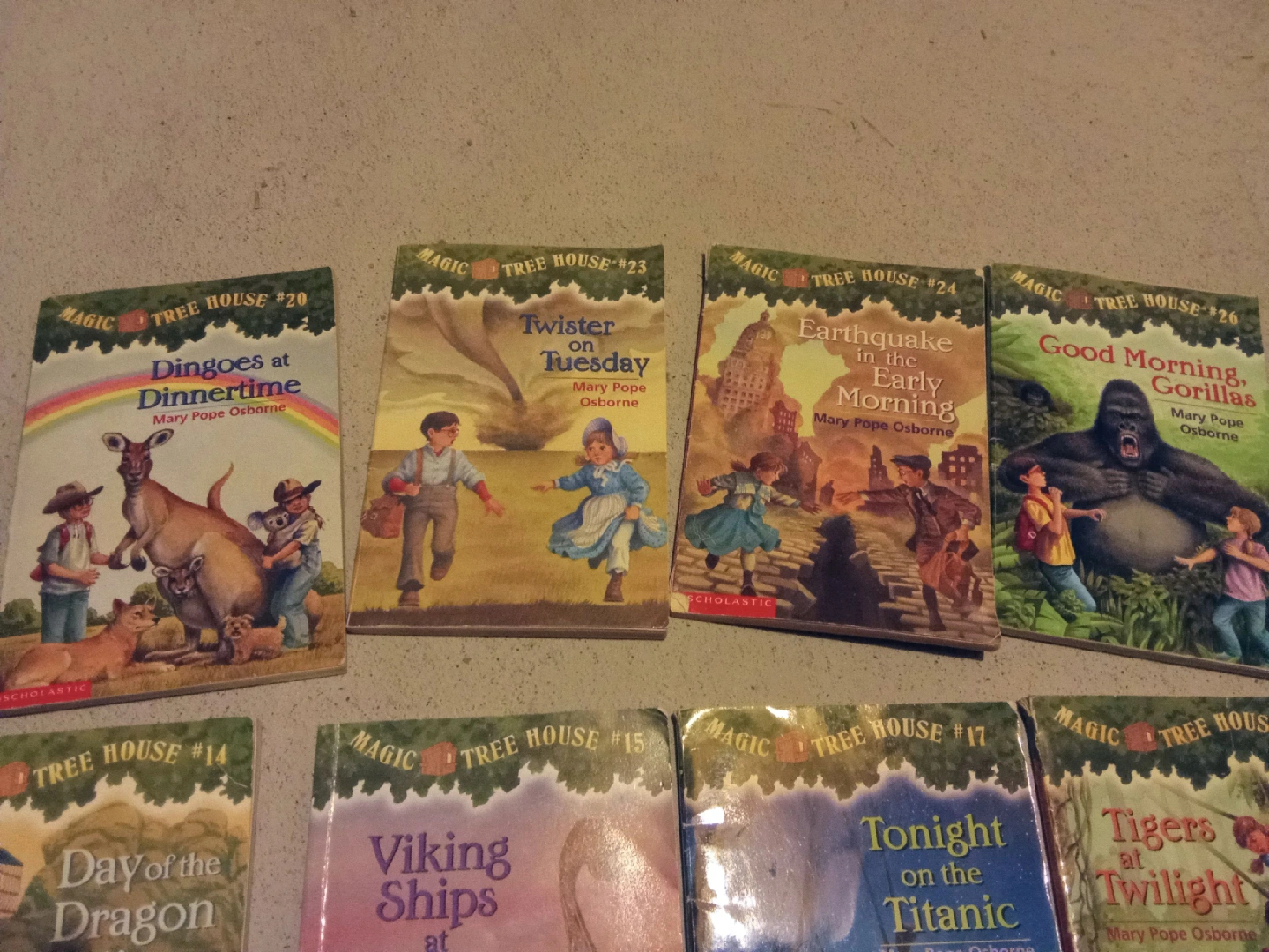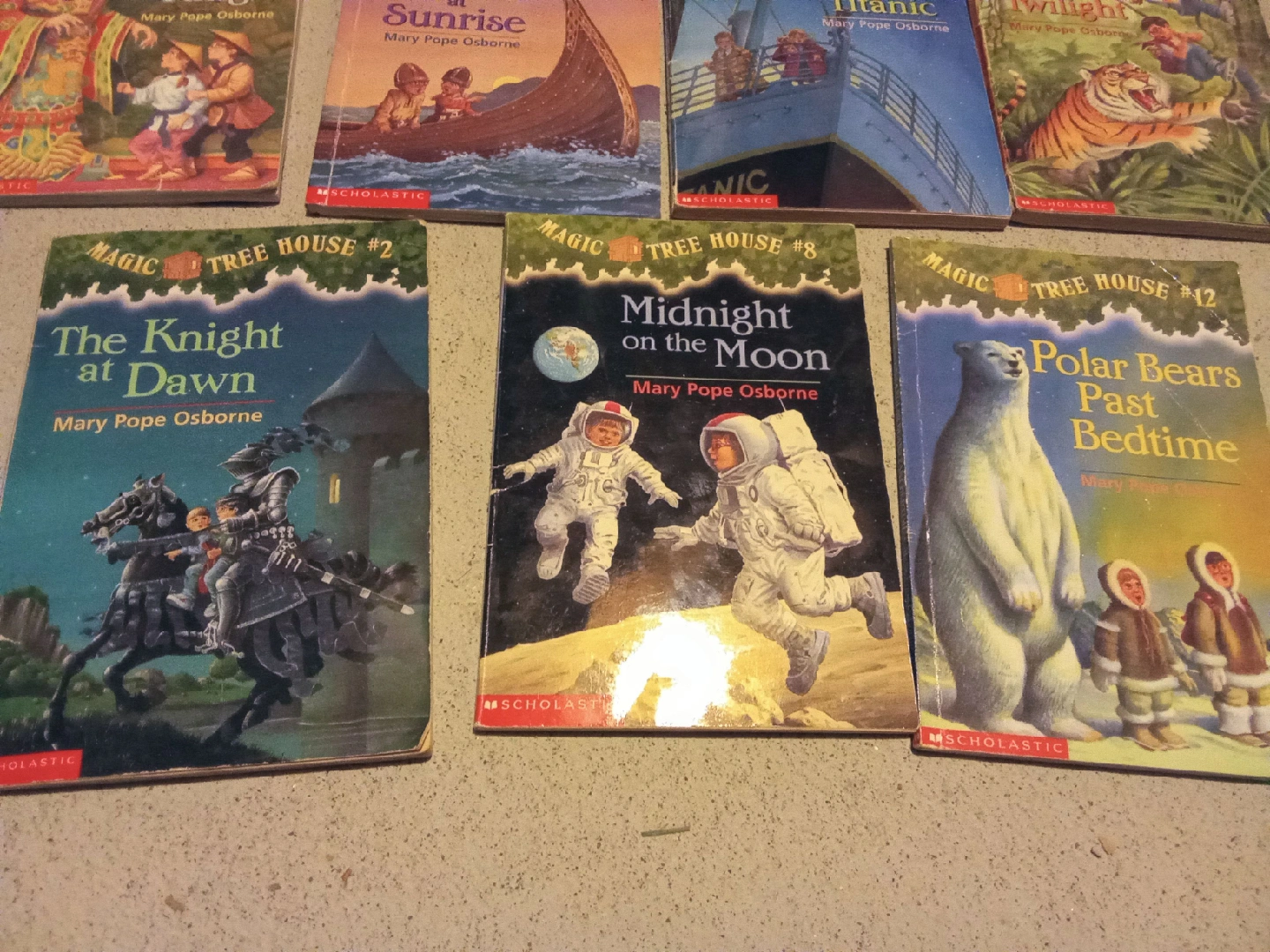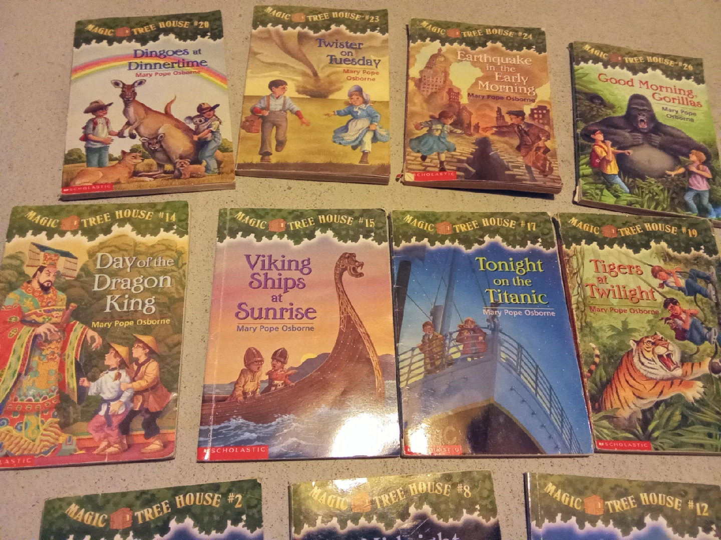 Selling a lot of Magic Tree House books by Mary Pope Osborne! Great for young readers and fans of the series. Includes titles such as The Knight at Dawn, Midnight on the Moon, Polar Bears Past Bedtime, Day of the Dragon King, and many more!