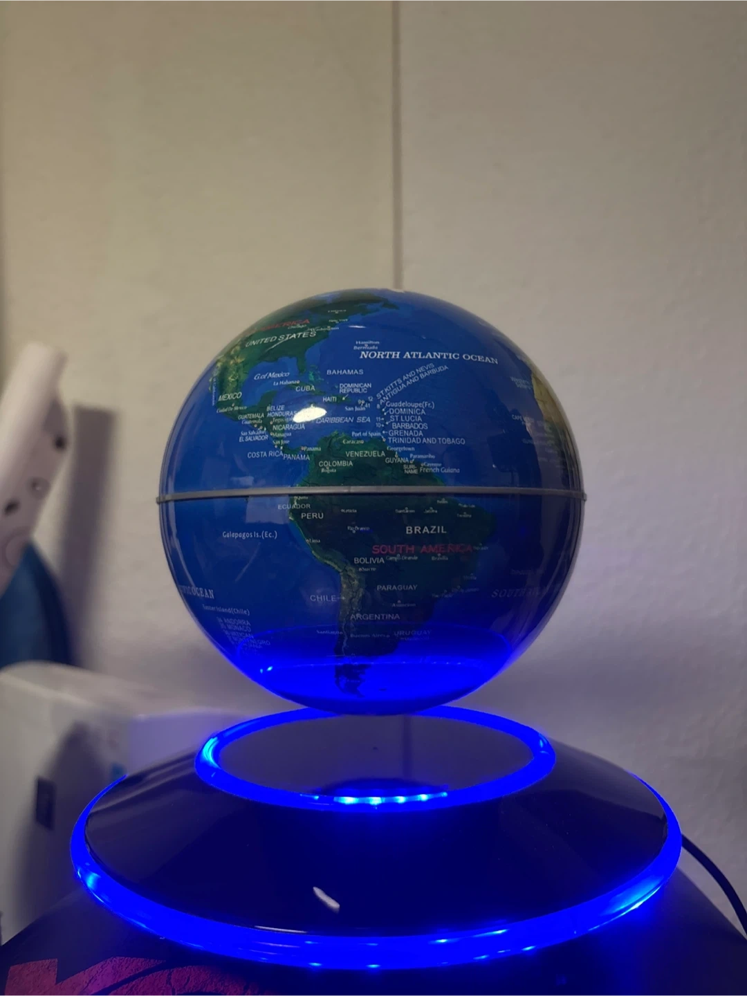 Add a unique touch to any room with this magnetic levitation and rotation globe! It's in great condition and comes with the box. The globe levitates in air and features automatic rotation and lighting, making it a cool and educational decorative piece for your home or office.