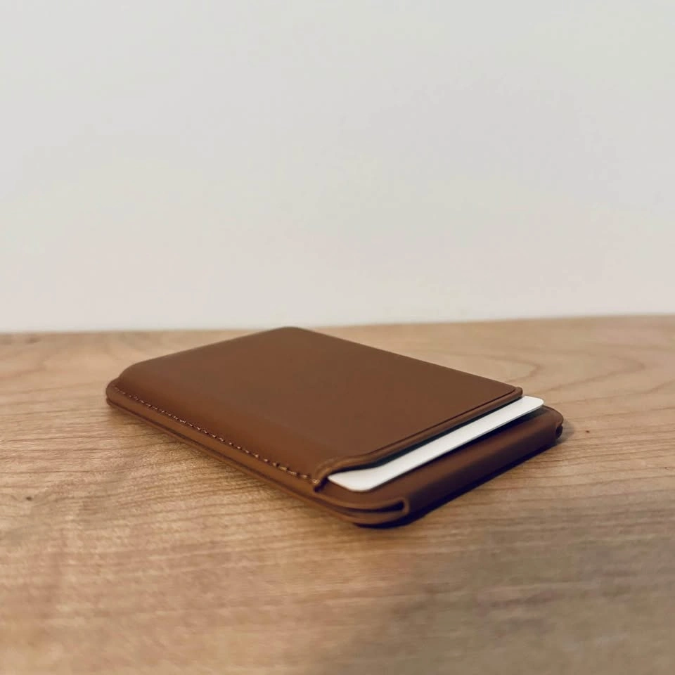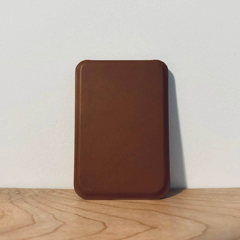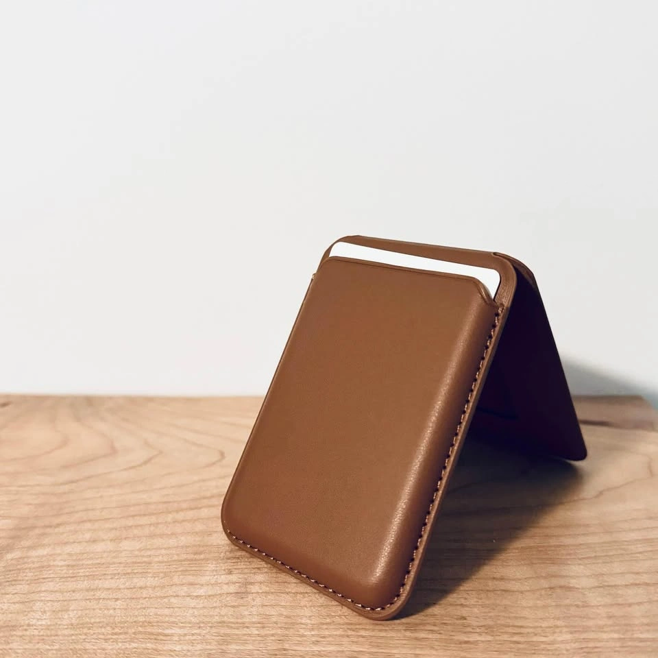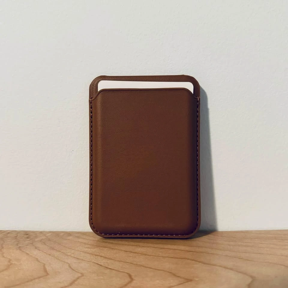 20Selling brand new never used brown Leather MagSafe wallet. Holds up to 3 cards and doubles as a portrait or elevated landscape stand for your phone. For reference the magnetic connection between the wallet and phone is stronger then Apple Wallets. The attached video demonstrates magnet strength.