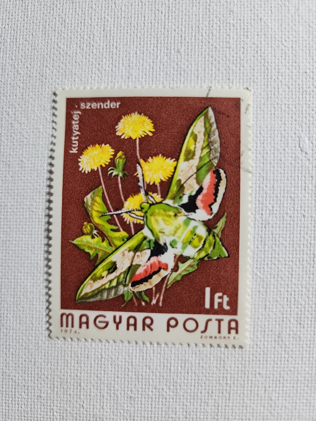 137Selling a Magyar Posta stamp from 1974. It features a beautiful illustration of a moth and some yellow flowers. A great addition to any stamp collection! Album 1.1