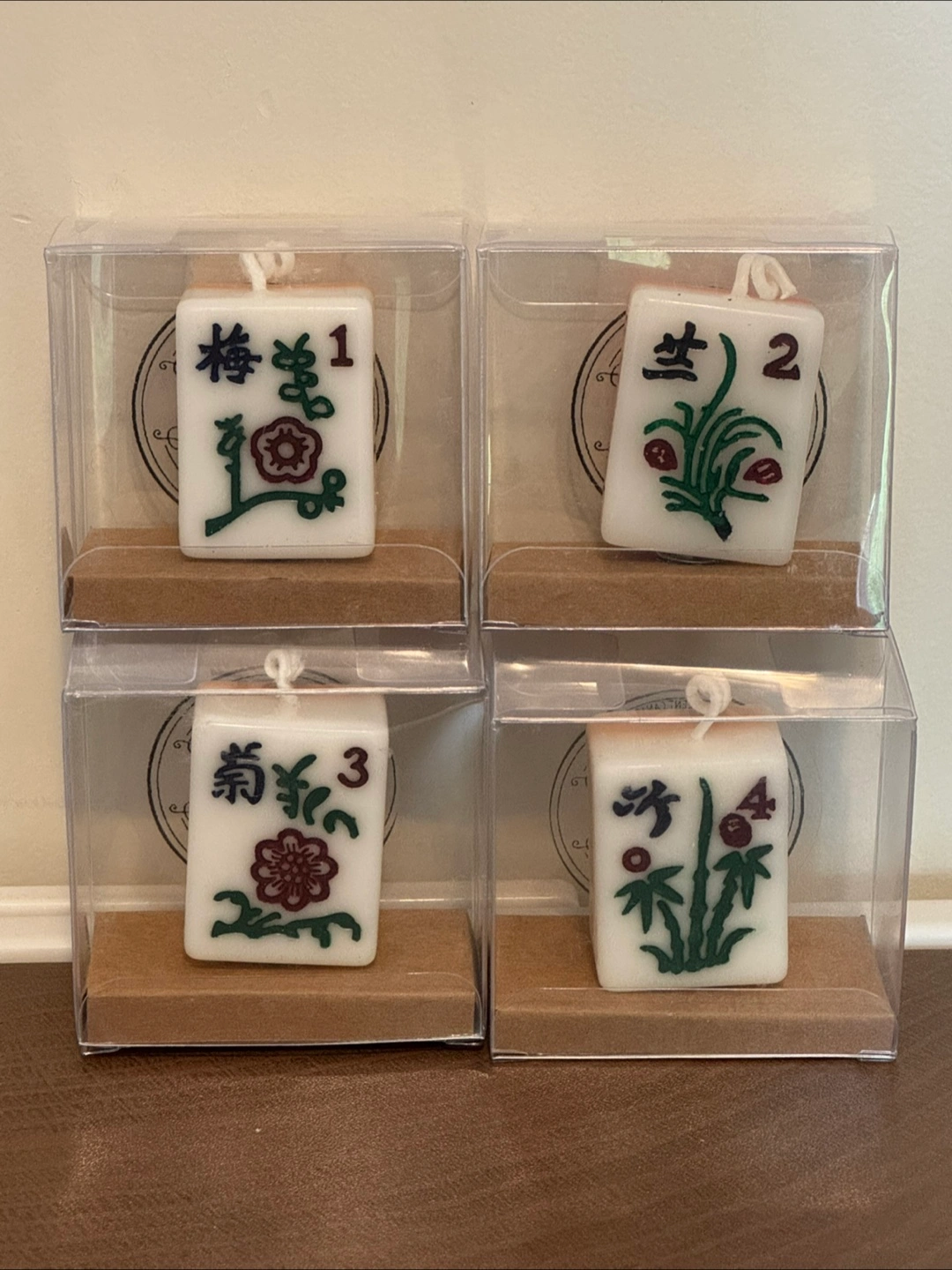 15🀄️Handmade Scented Candle in transparent Box 🕯️Product Details: Each Mahjong candle approximately 4.8*3.6*2.1cm (the size is similar to Guangdong Mahjong) Transparent box is 7*3.7*6.6cm 🎁What a special gift for friends and family who’s like playing Majong. 💰$15 for each ❗️4 Mahjong candles with gift box is $58 📦 Pick up at Richmond or delivery. Over 75CAD for free shipping within BC. More products on IG -> alluscent.canada