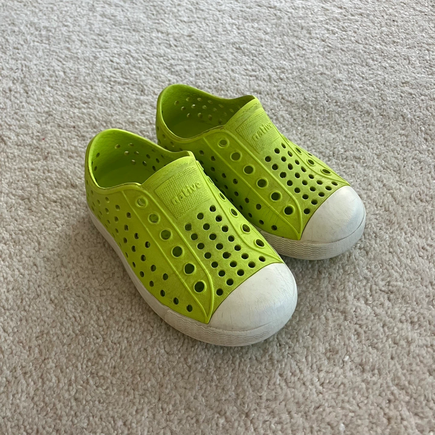 Good condition Native Jefferson shoes. Easy to slip on for kids! Show some signs of wear, but still lots of life left.