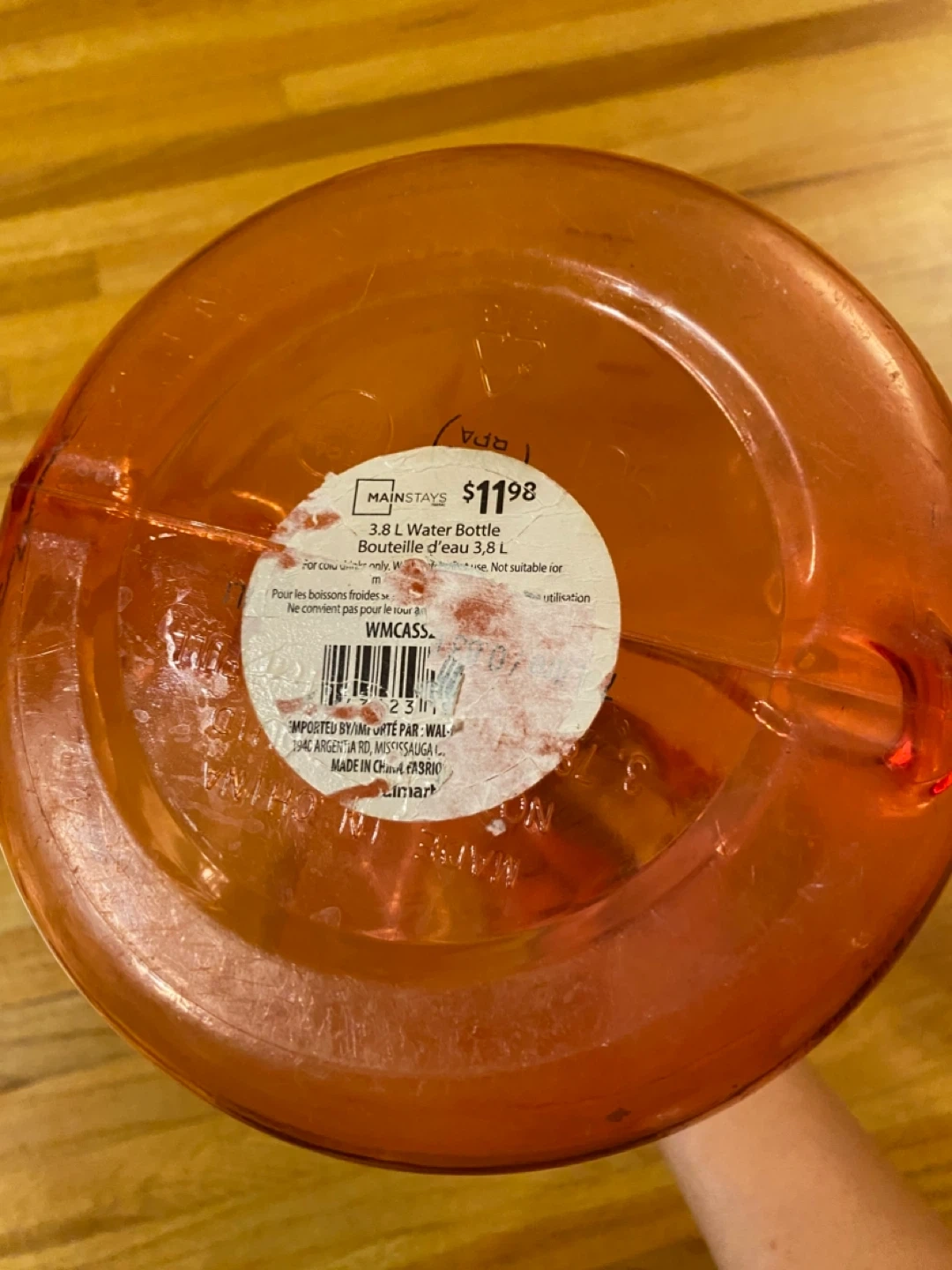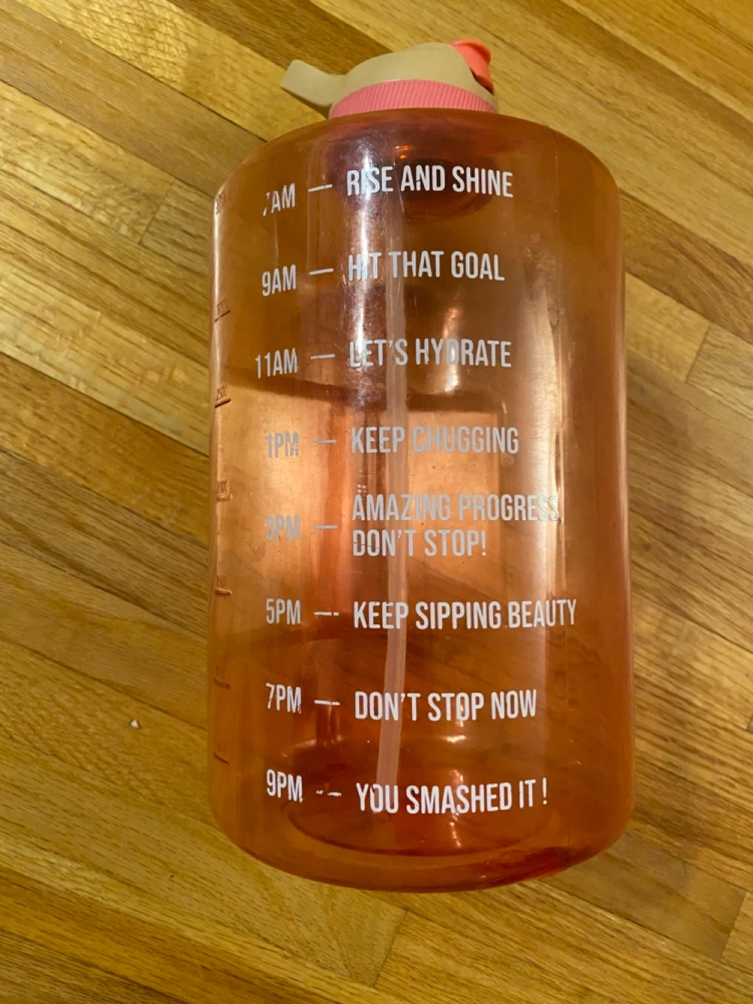 65Stay hydrated with this Mainstays 3.8 L water bottle! It's perfect for keeping you on track throughout the day. The bottle has time markers to help you reach your hydration goals. Originally bought for $11.98 at Walmart