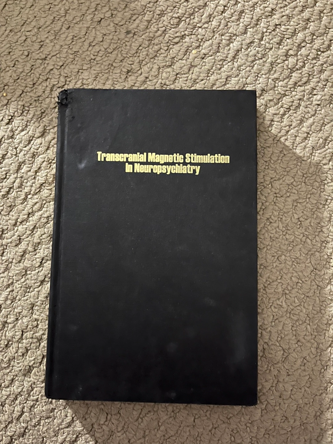 Selling a book titled 'Transcranial Magnetic Stimulation in Neuropsychiatry'. It's published by American Psychiatric Press, Inc. As seen in the first photo, there is a slight chip of the hard cover, but the pages remain undamaged. Comes from a smoke free and pet free home