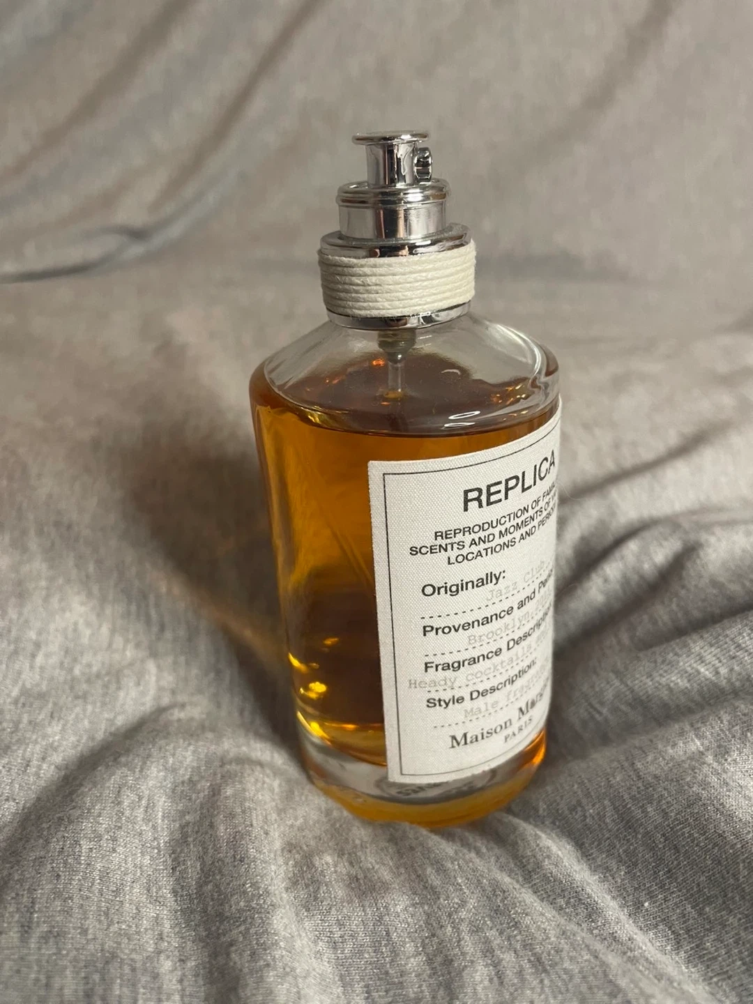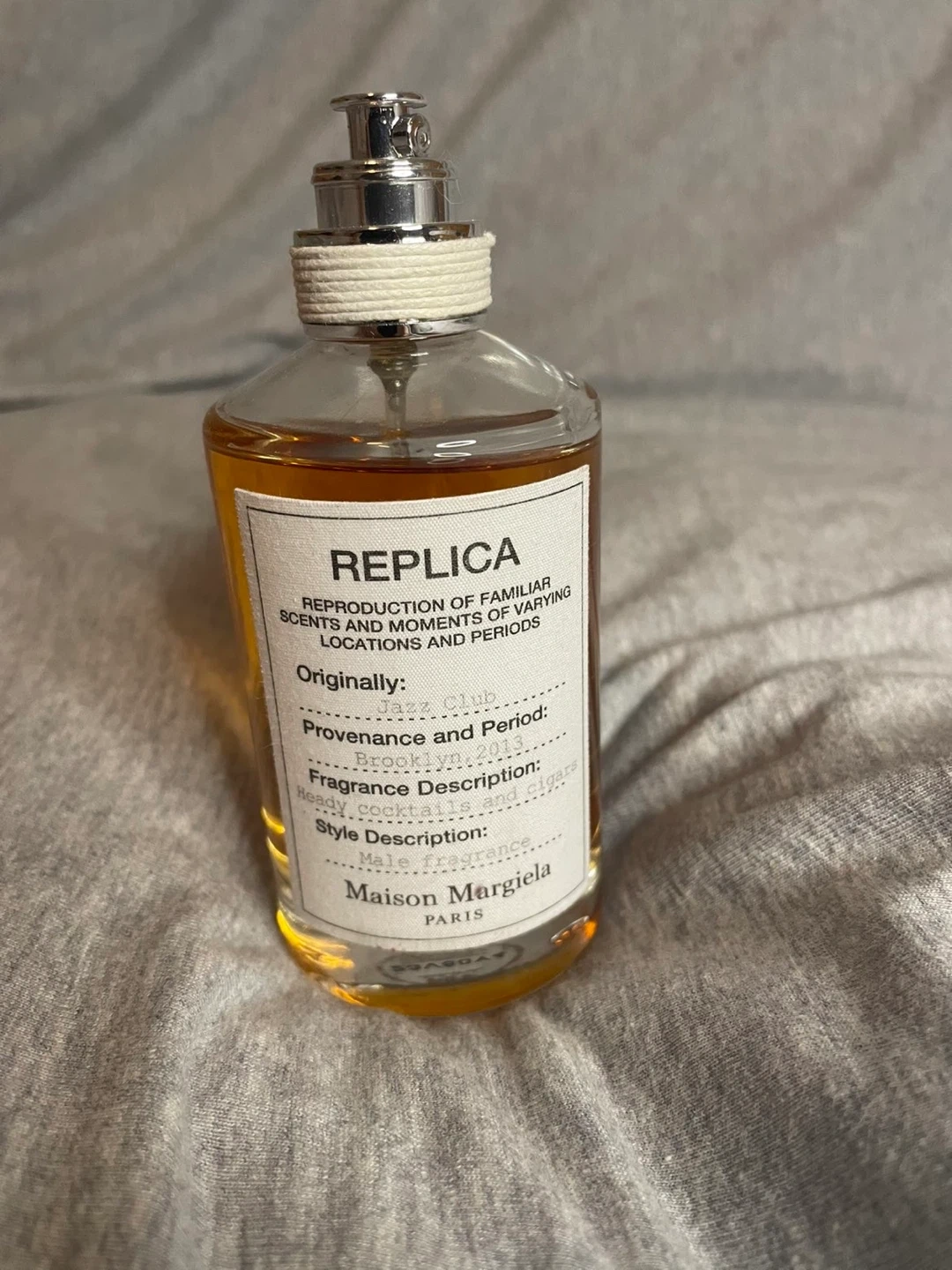 Selling a bottle of Maison Margiela's REPLICA Jazz Club fragrance. It's a warm and inviting scent, perfect for evenings out or cozy nights in. The fragrance description includes notes of heady cocktails and cigars, evoking the atmosphere of a Brooklyn jazz club. A great addition to any fragrance collection!