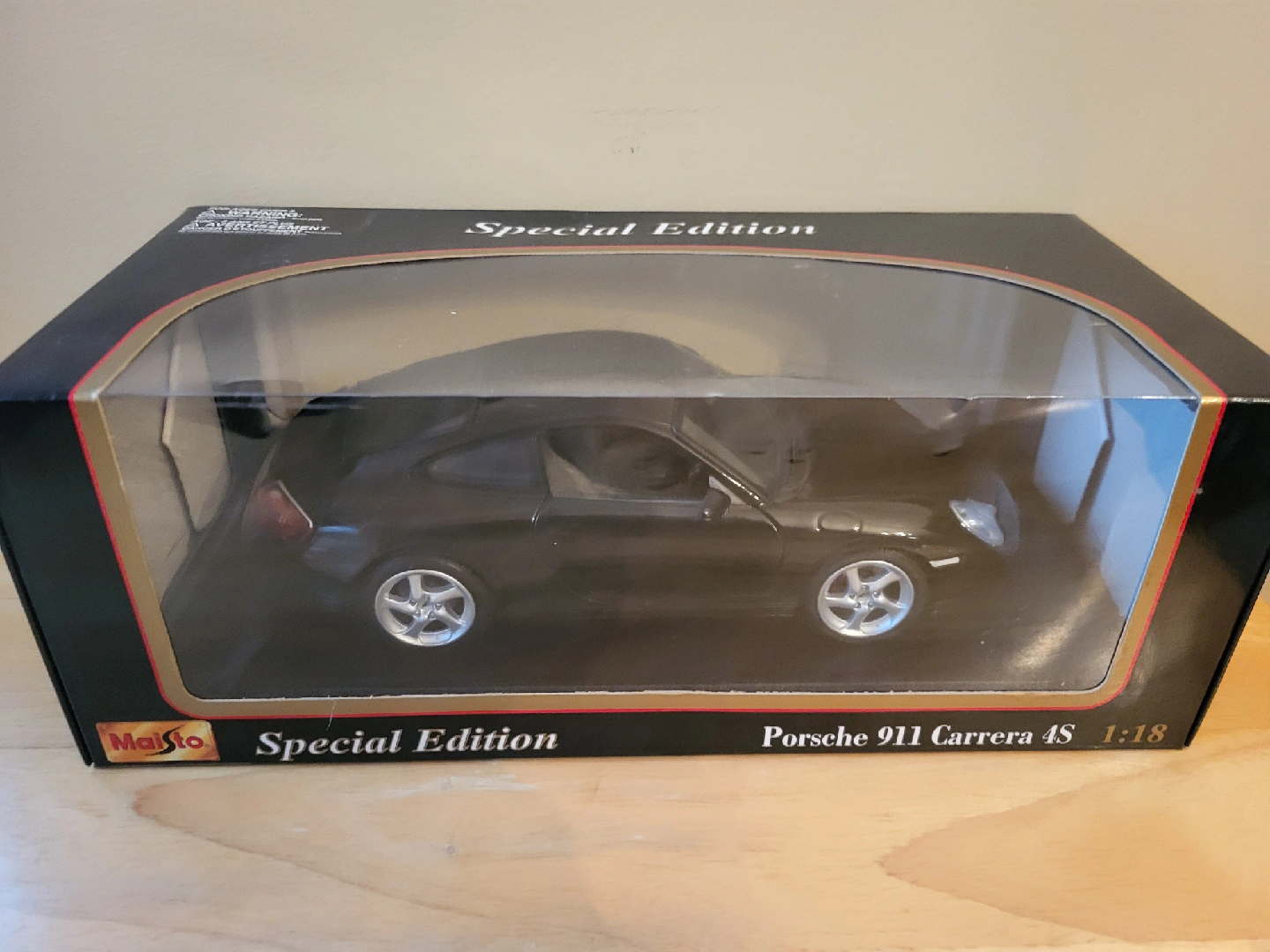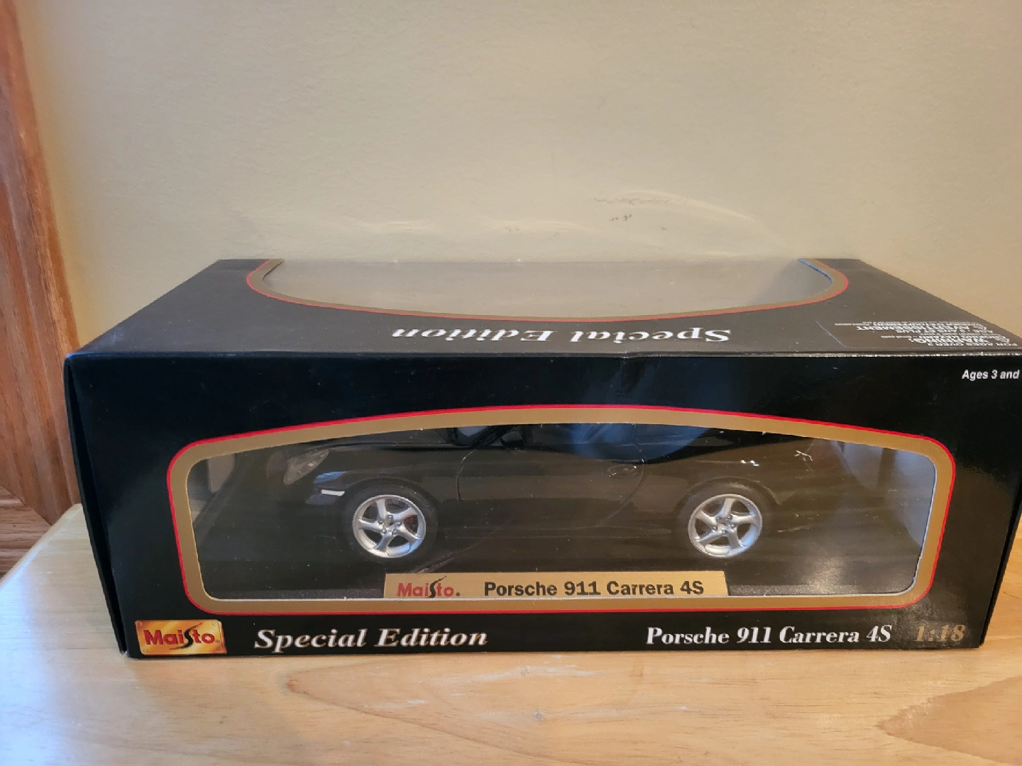 Selling a Maisto Special Edition Porsche 911 Carrera 4S, in 1:18 scale! It comes in its original box, perfect for collectors or as a gift for car enthusiasts