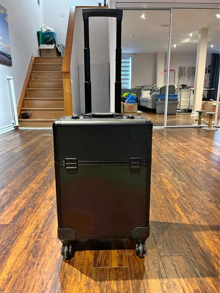 10Makeup Train Cases Cosmetic Organizer Box Black Cosmetic Jewelry Organizer, Rolling, Portable, Salon, Beauty, Trolley, with 4 Wheels. Used, 9/10 condition. New on Amazon for $119.00, asking $75 obo. No lowballs, pick up only. Bathurst and Davis area. Need gone ASAP!
