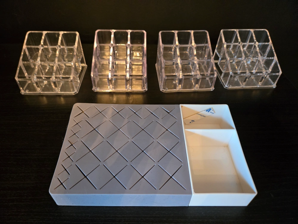 Selling a makeup organizer set. It includes four clear lipstick holders and a purple lipstick organizer. Perfect for keeping your makeup collection tidy and accessible! $5 each or take all 5 for $20. Porch pick up near Elgin Mall