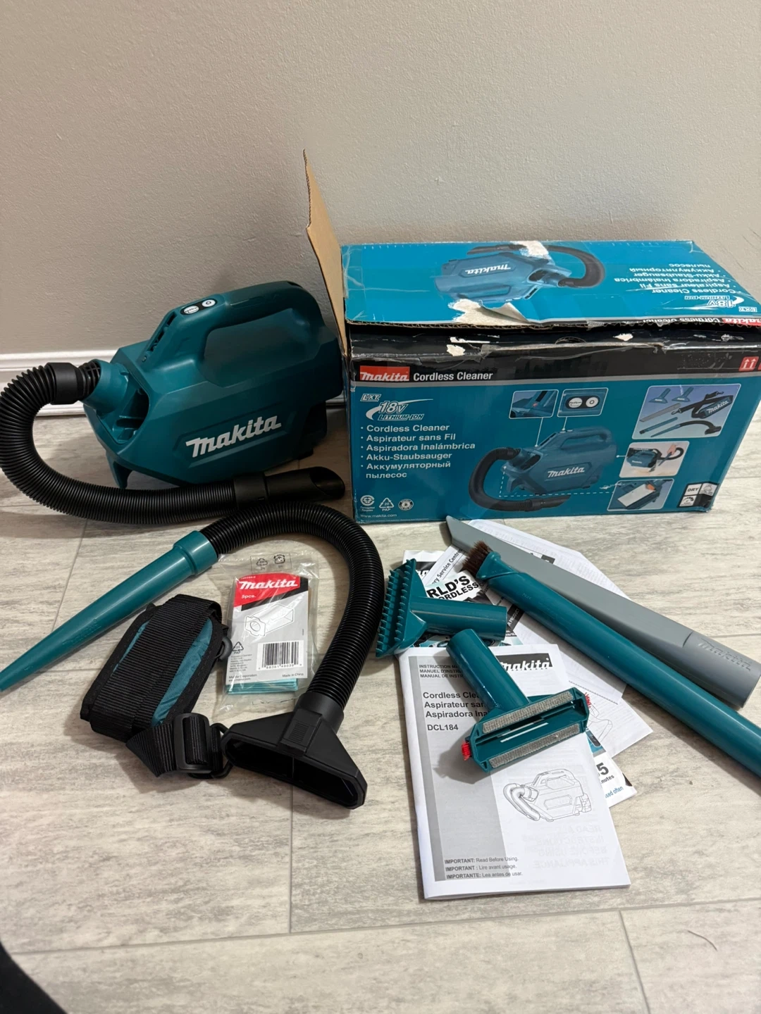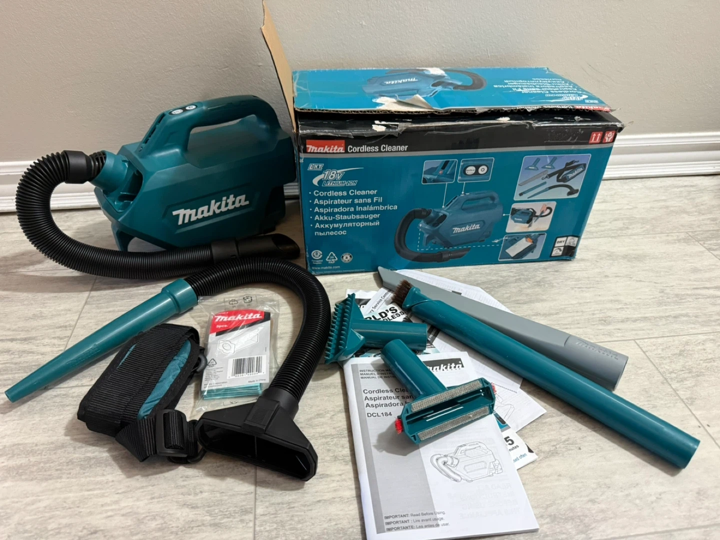 Makita 18V LXT Handheld Canister Vacuum (Tool Only) Description: New Open Box, Portable Makita Handheld Vacuum Model # DCL184Z Key Features: Portable Handheld Vehicle Detail Cleaner Easy-to-use and various tip attachments (standard accessories) Tool / Battery protection indication light Push button air volume selection (normal / high / max settings) Use the exhaust to blow away dust from the door / vents / gaps Price: $150.00 Local Pickup in Westmount Delivery & Shipping Available — TMVK107