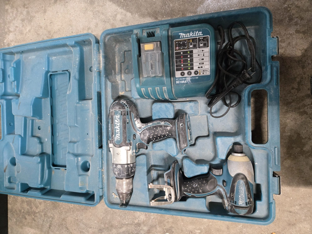 Makita cordless drill and impact driver set with charger and case. no batteries