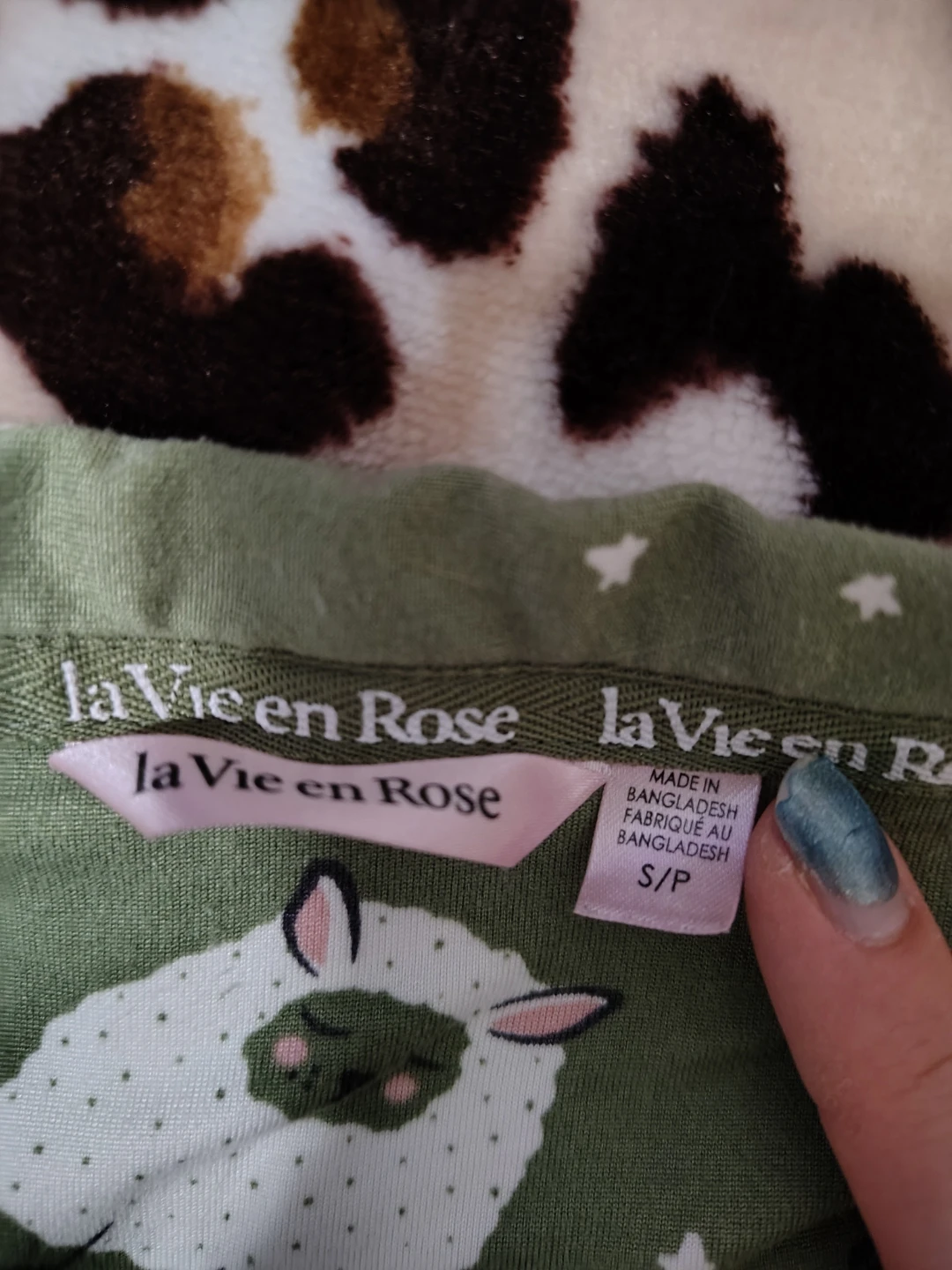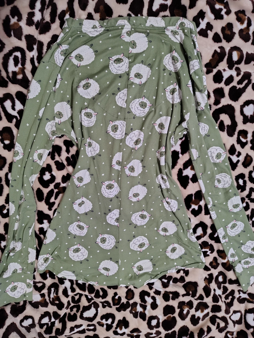 This la Vie en Rose long-sleeved romper features a cute all-over sheep print. It's a size S made with very soft buttery fabric. The v-neck design has a button-up front. And is overall cute for lounging too!