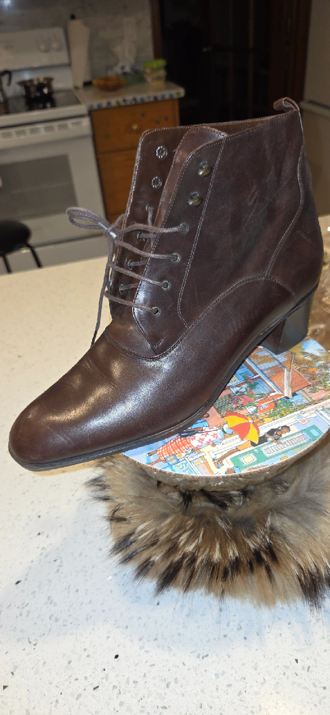 These stylish Mandolesi Italian ankle boots are a rich brown leather. They are a European size 40. Perfect for adding a touch of class to any outfit!