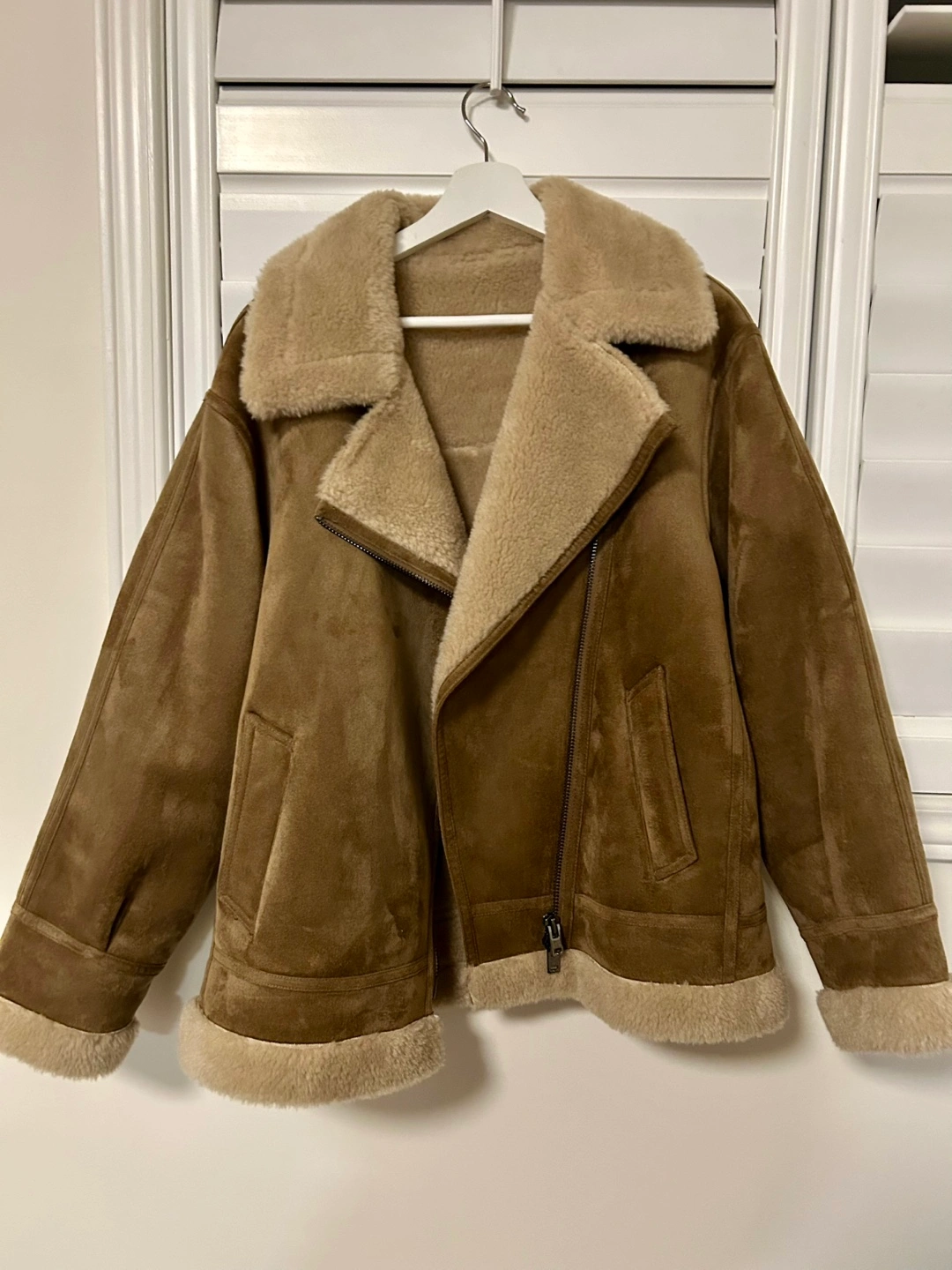 Adri Faux Shearling-Lined Faux Sheepskin Biker Jacket. Overfit. Size small. I wore it once and it's a bit big for me It's now on Hudson's Bay for 219.99+tax.