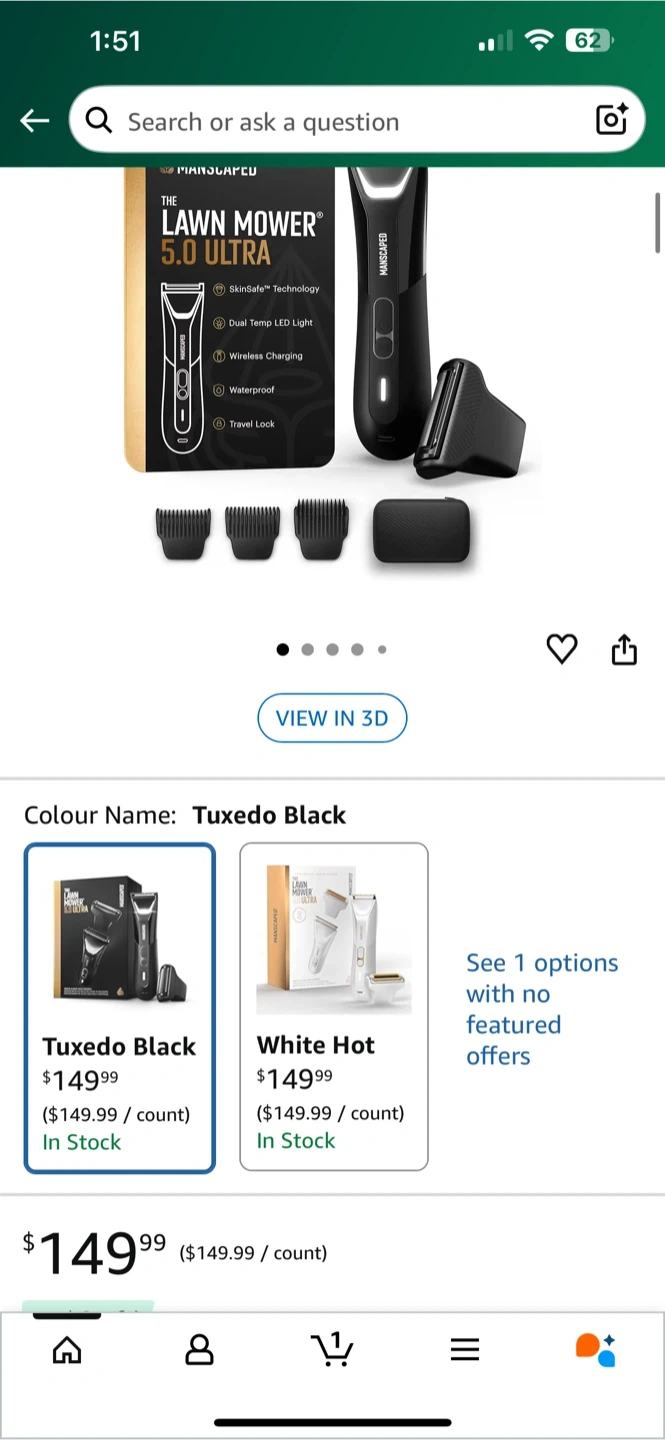 1000+Selling a MANSCAPED™ The Lawn Mower 5.0 Ultra Groin & Body Hair Trimmer in Tuxedo Black. It comes with the box and all included components. This trimmer features SkinSafe™ Technology, a Dual Temp LED Light, Wireless Charging, and is Waterproof. It's the gold standard of groin grooming! Brand new opened box