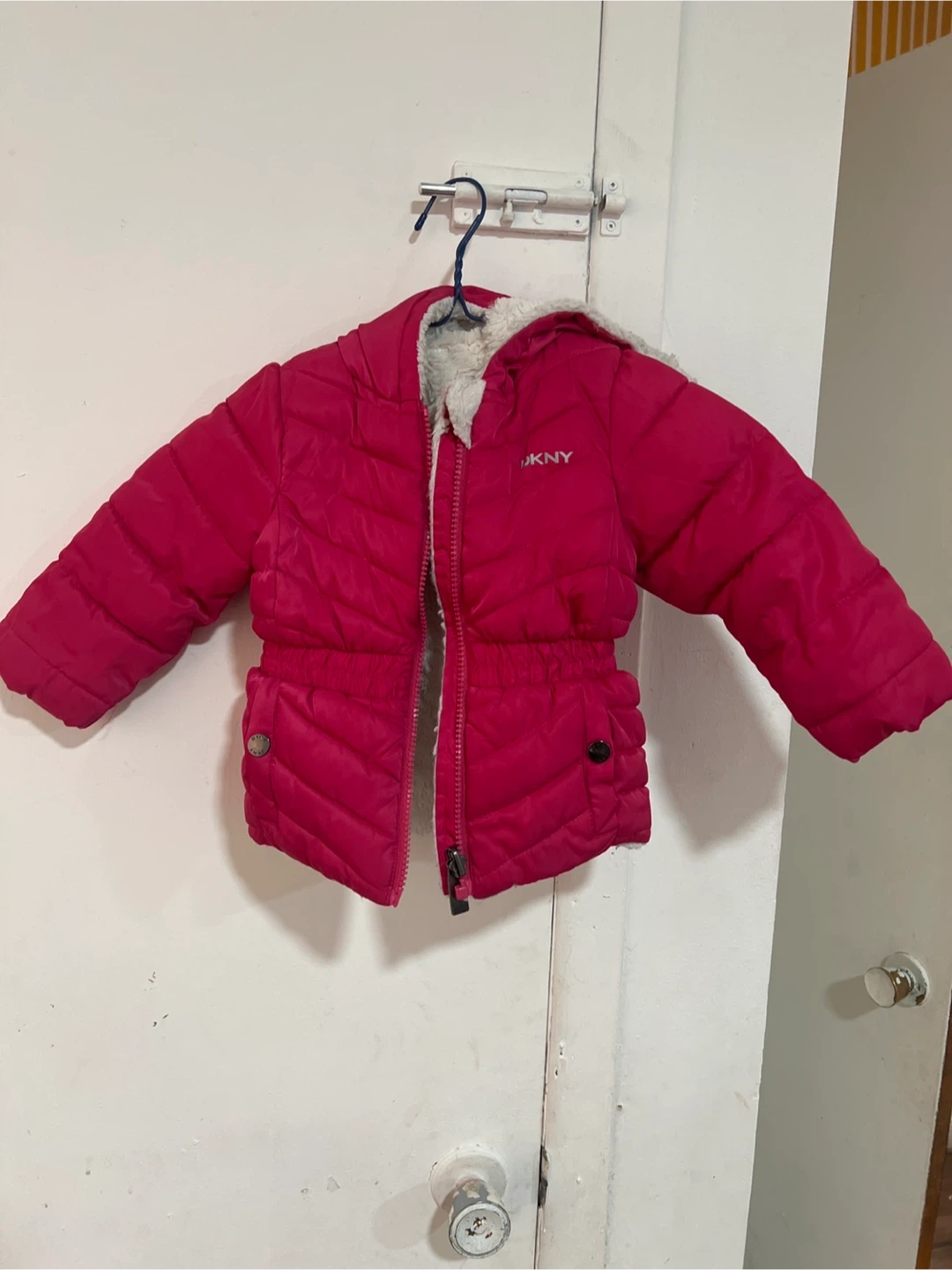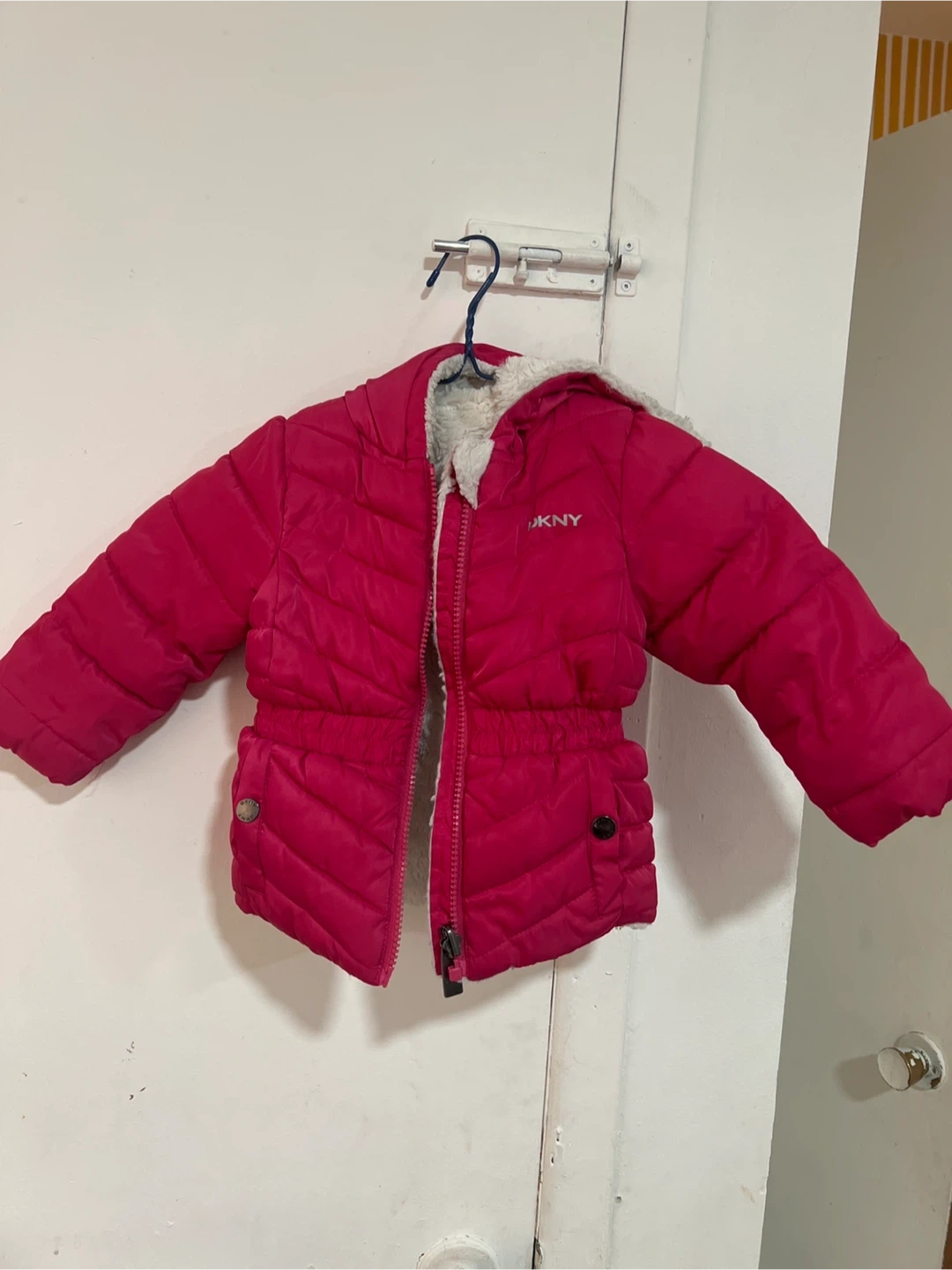 Joli manteau d'hiver DKNY de couleur rose. Idéal pour garder votre enfant bien au chaud pendant les mois froids! Maison pas d’animaux non fumeur très propre. nous sommes a saint Léonard 25 e avenue Enfant 18 mois