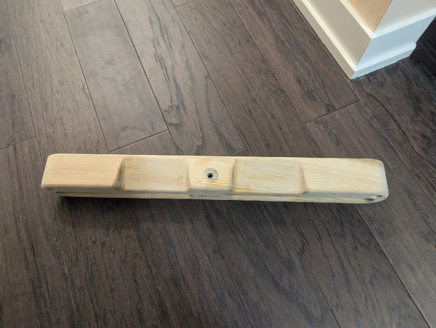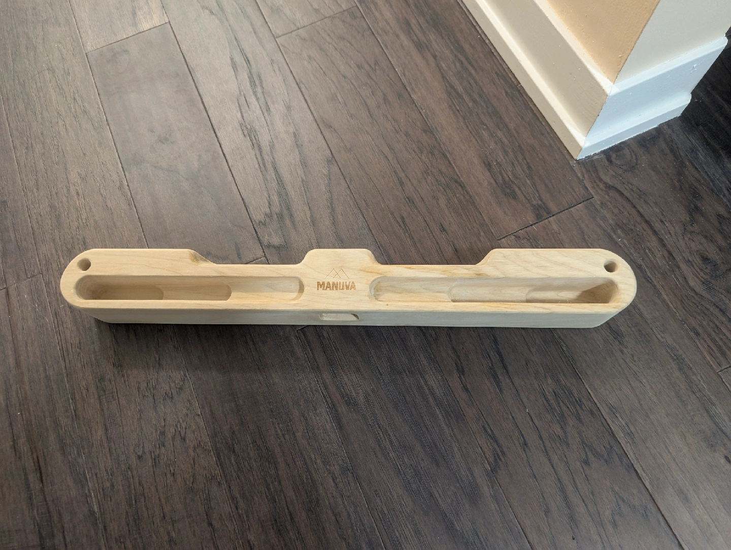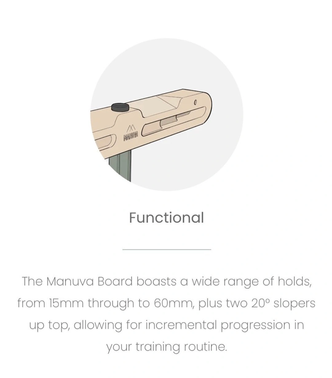 280Selling a Manuva training board, perfect for climbers! It comes with a removable door frame mount, making it easy for a damage-free set up anywhere with a doorframe, or for mounting on a sling to bring to the crag. The board features jug holds and a 20-degree sloper, with depths of 45mm, 30mm, and 15mm.