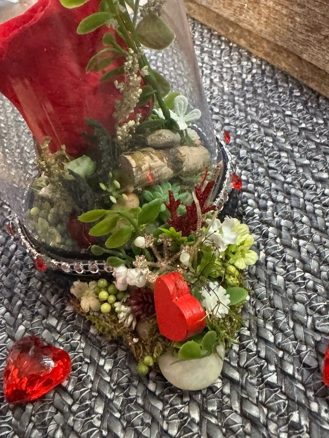 Add a touch of everlasting beauty to your space with this preserved Forever Red Rose Cloche. This stunning piece features a real rose that has been carefully preserved to maintain its beauty indefinitely. Encased in a sleek cloche with decorative accents including a wooden red heart. This would make a perfect Valentine gift. I've seen similar ones selling on Kijiji for between $40-$80 CAD. If the ad is up, it's available! Pick up Beacon Heights North Edmonton. Condition: New. Cash accepted.