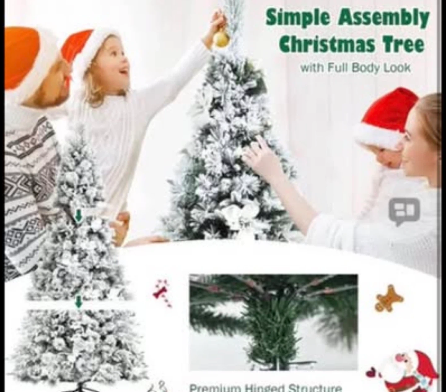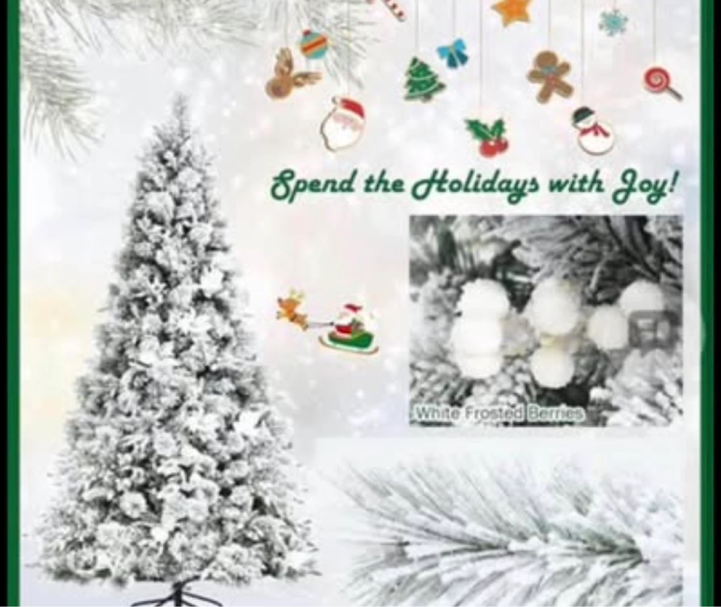 7FT Snow Flocked Artificial Christmas Tree, Hinged Xmas Tree w/Folding Metal Stand, White Berries & Poinsettia Flowers, Décor for Home, Office, Party, Wedding brand new in the box price firm
