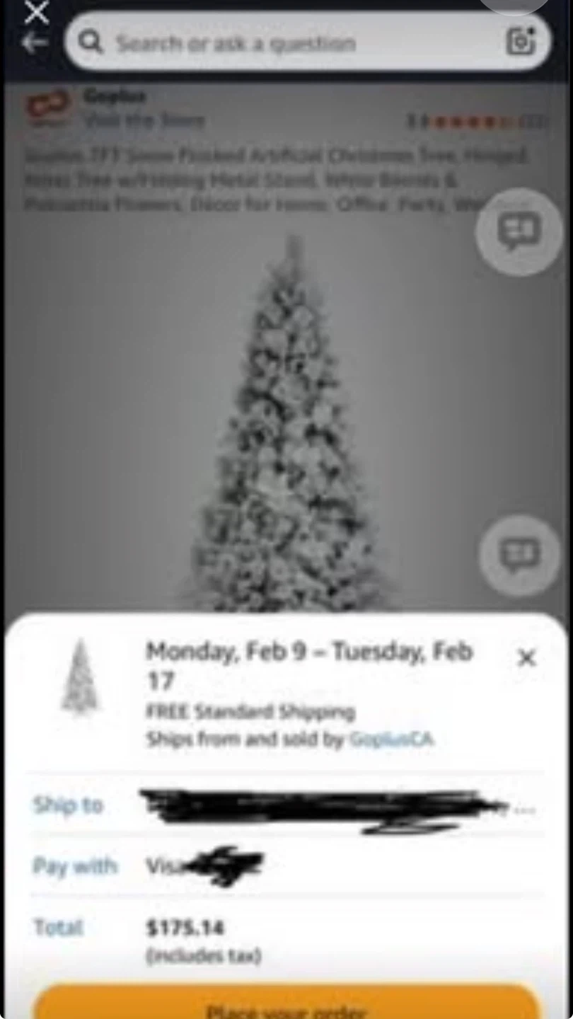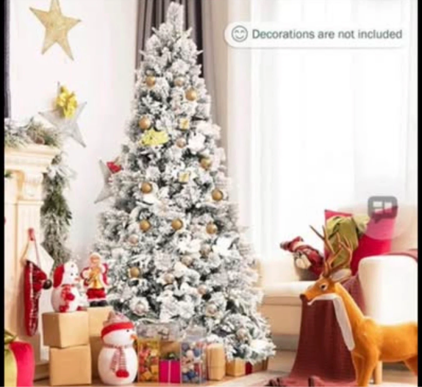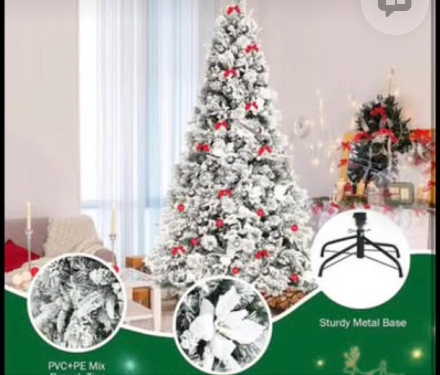 7FT Snow Flocked Artificial Christmas Tree, Hinged Xmas Tree w/Folding Metal Stand, White Berries & Poinsettia Flowers, Décor for Home, Office, Party, Wedding brand new in the box price firm