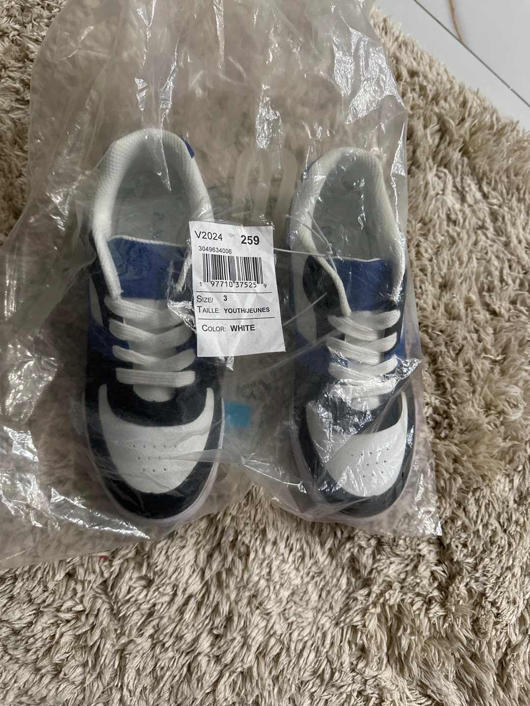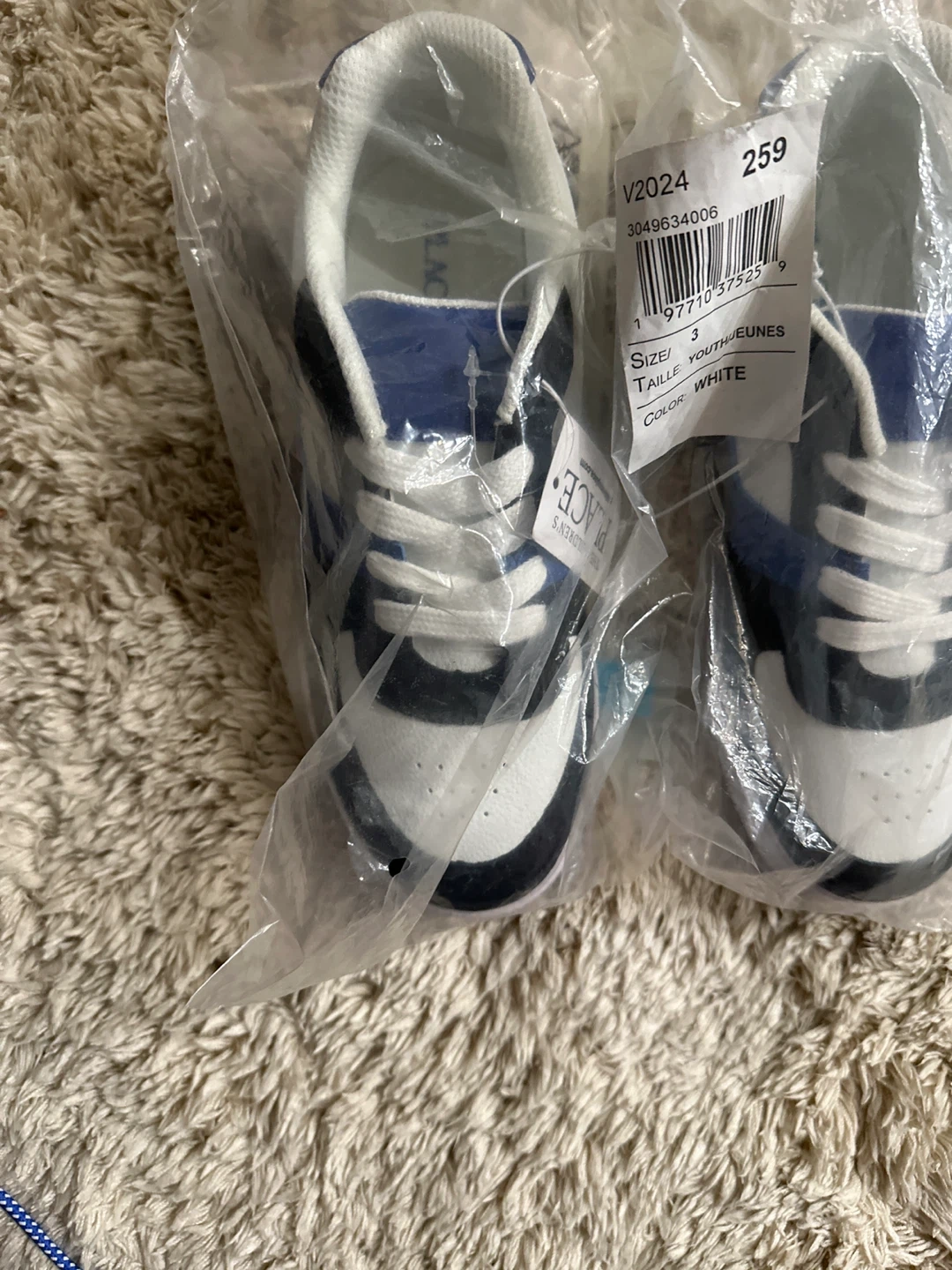 These are a pair of The Children's Place youth sneakers in a size 3 and color white. They are brand new in the original packaging! 2