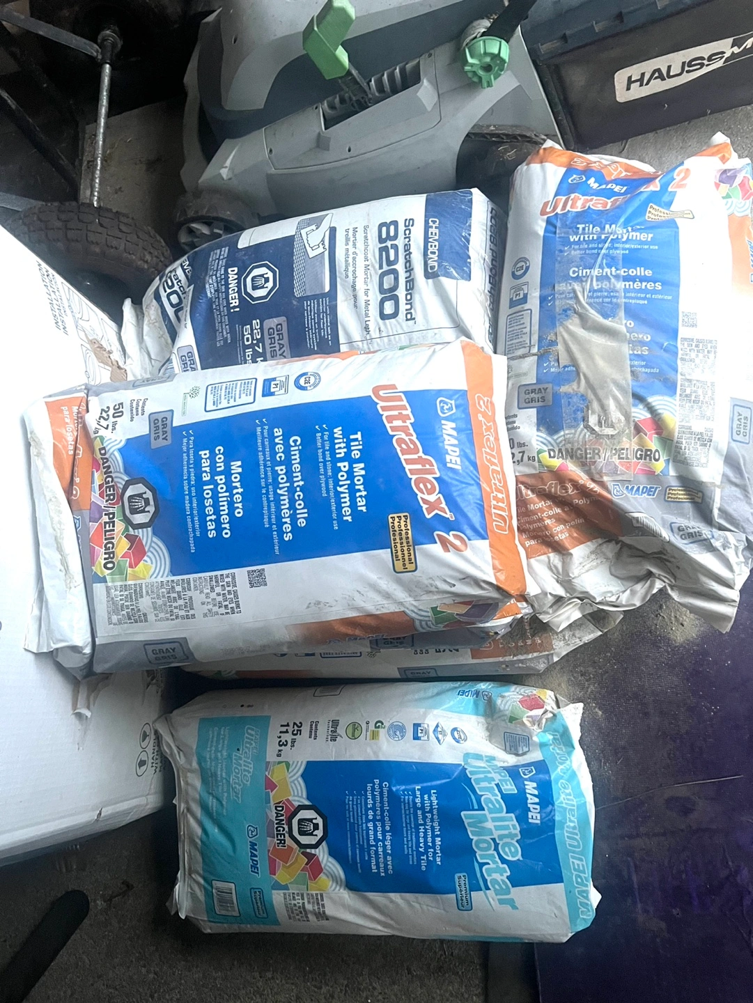 Selling bags of Mapei tile mortar! I have Ultraflex 2 and Ultralite mortar available. Perfect for your tiling projects!