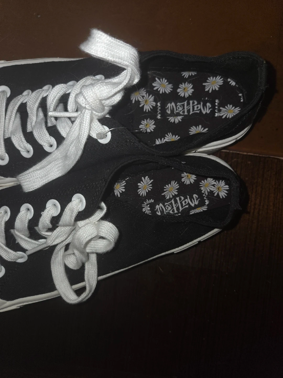 89Selling a pair of Maple sneakers in black and white! They feature a cute daisy pattern on the inside lining. Size 10.