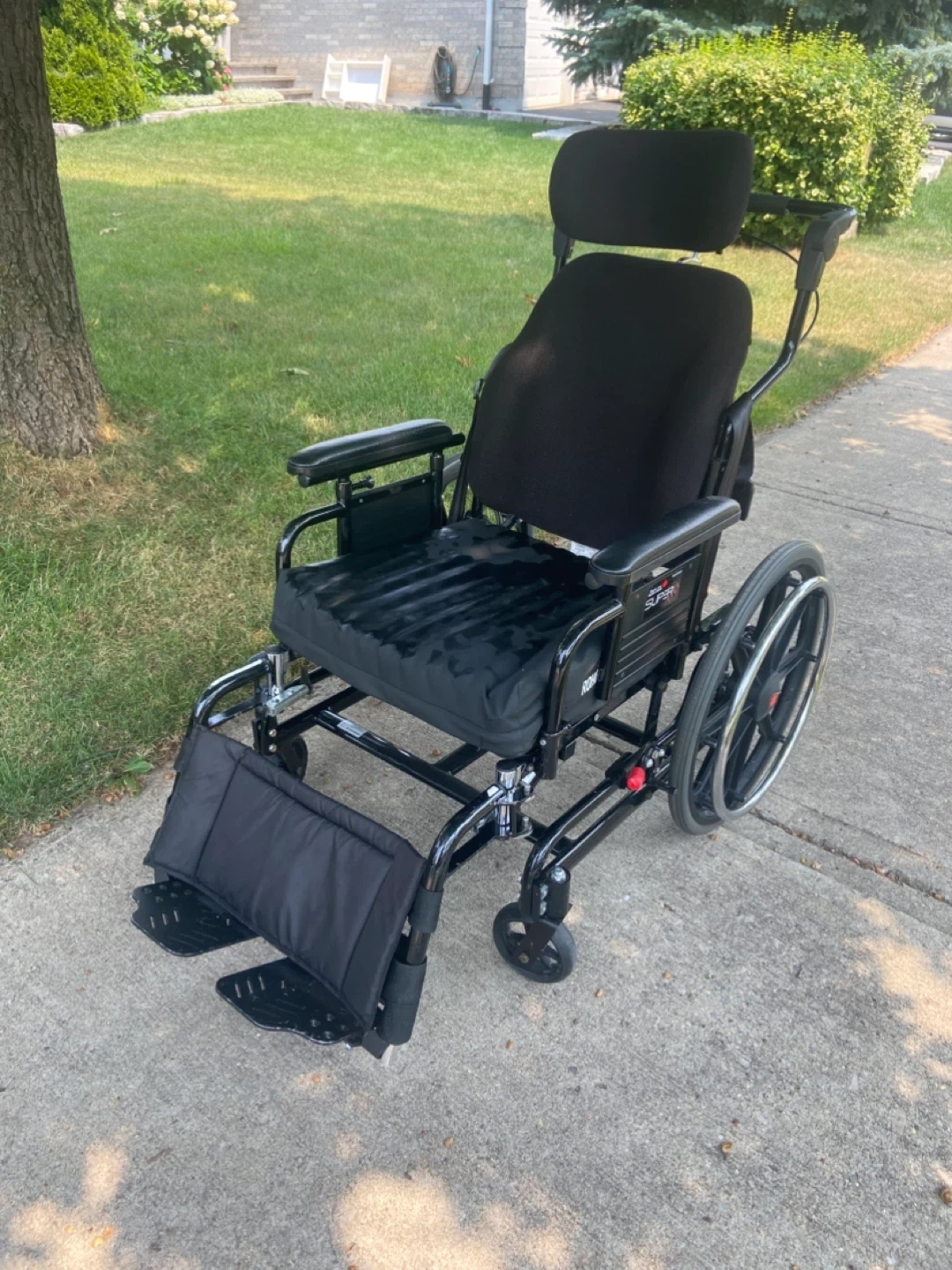 65Selling a Maple Leaf Wheelchair, Super Tlt model. It's in great shape and ready for a new home. The wheelchair has a maximum weight capacity of 250 lbs and includes Roho cushion