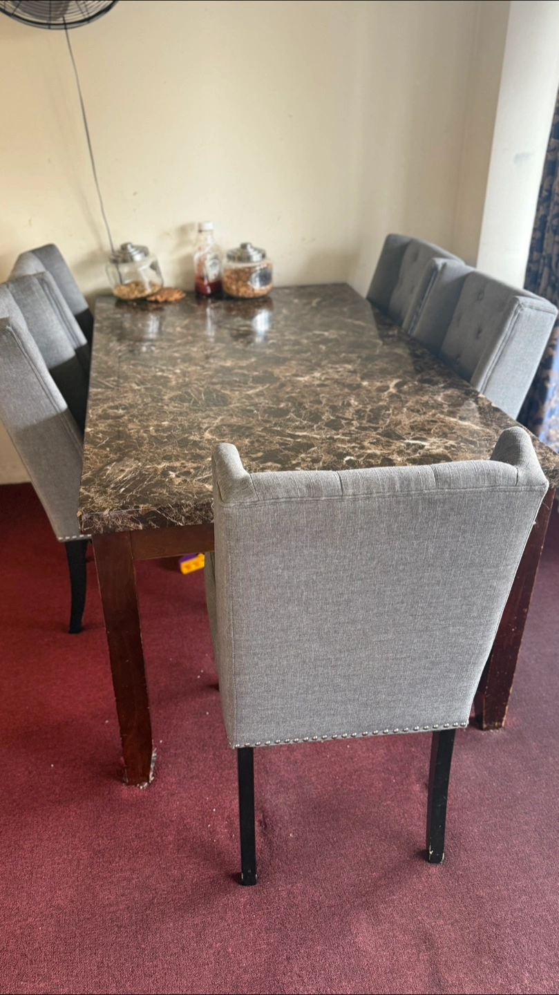 Modern Glass Dining Table + 6 Upholstered Chairs โจ